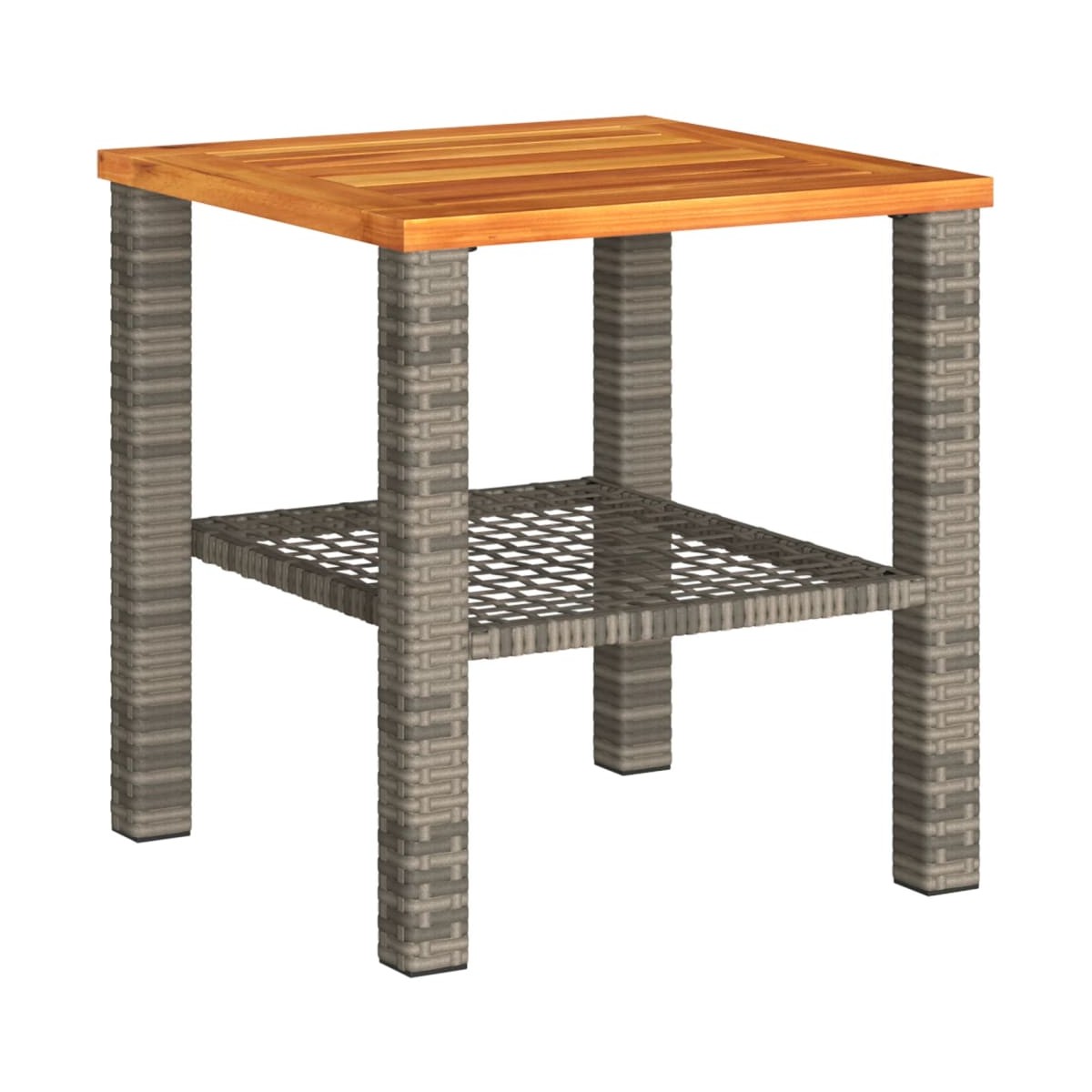 ¡Reúnete alrededor de esta mesa de jardín para disfrutar de una taza de café o charlar con tu familia y amigos en el jardín, el patio o terraza! Material duradero: El ratán PE, también conocido como ratán sintético, es un material sintético resistente y de bajo mantenimiento que se parece al ratán natural. Es ligero, fácil de limpiar y se usa comúnmente para muebles de exterior debido a su durabilidad y propiedades resistentes a la intemperie.Superficie estable y fácil de limpiar: Esta mesa de jardín tiene una superficie de madera de acacia que es resistente, duradero y fácil de limpiar con un paño húmedo.Estructura robusta y estable: La estructura de acero con recubrimiento en polvo garantiza que el mueble de jardín sea resistente y estable para usarlo a diario al aire libre. Información útil:Para asegurarte de que tus muebles de exterior se mantengan hermosos, recomendamos protegerlos con una funda impermeable.