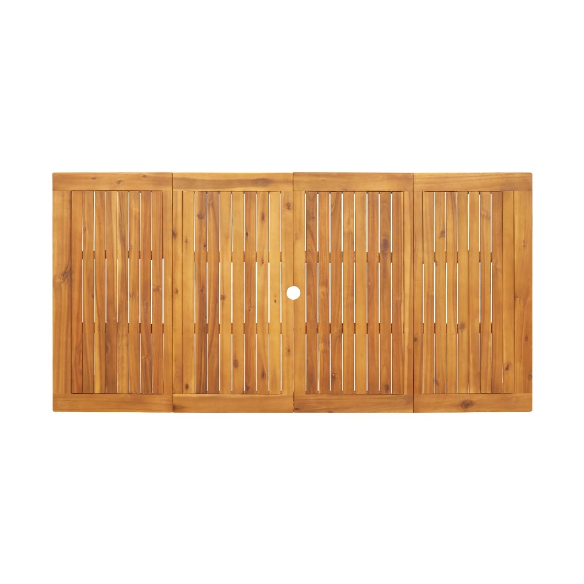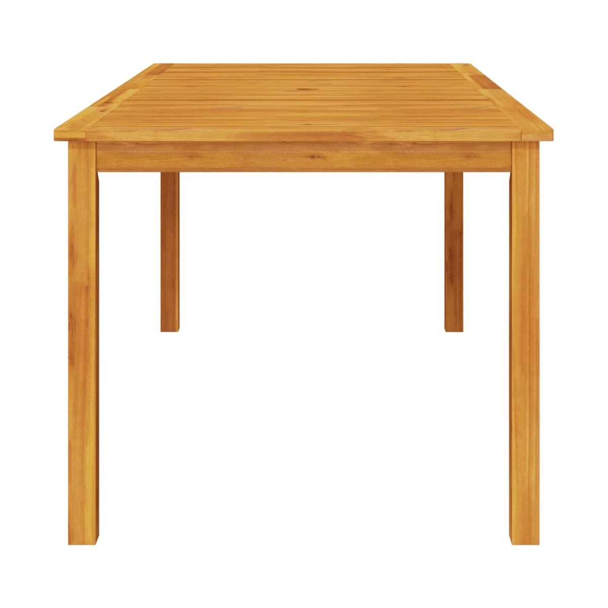 ¡Disfruta de una agradable comida al aire libre con familiares y amigos alrededor de esta mesa de comedor! Esta mesa de madera dará un toque de encanto rústico al patio, el jardín o la terraza. Madera maciza de acacia: La mesa de jardín es de madera maciza de acacia. La madera de acacia maciza es un bonito material natural. La madera de acacia tiene hermosas vetas que hacen que cada mueble sea único y ligeramente diferente de los demás.Superficie estable: La mesa de exterior ofrece un soporte excelente para bebidas, aperitivos, fruteros y tus adornos favoritos.Superficie estable y fácil de limpiar: Esta mesa de jardín tiene una superficie de madera de acacia que es resistente, duradero y fácil de limpiar con un paño húmedo. Información útil:Para asegurarte de que tus muebles de exterior se mantengan hermosos, recomendamos protegerlos con una funda impermeable.