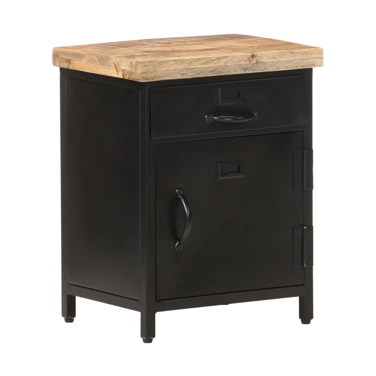 La mesita de noche de madera agrega un estilo industrial a tu dormitorio o sala de estar. La mesita de noche está hecha de madera de mango maciza rugosa, una madera dura tropical con la fuerza para soportar peso. También es resistente al desgaste del tiempo, haciéndolo estable y duradero. La base de hierro negro con recubrimiento en polvo combinada con acero proporciona una estabilidad extra para el mueble. La artesanía y las hermosas vetas de la madera hacen que cada mueble sea único y ligeramente diferente al siguiente. Esta mesita de noche también cuenta con 1 cajón y 1 puerta, lo que brinda un amplio espacio de almacenamiento para mantener sus artículos esenciales organizados y al alcance. Nota importante: Los colores y las vetas de la madera varían de una pieza a otra, por lo que cada una es única; la entrega es aleatoria.