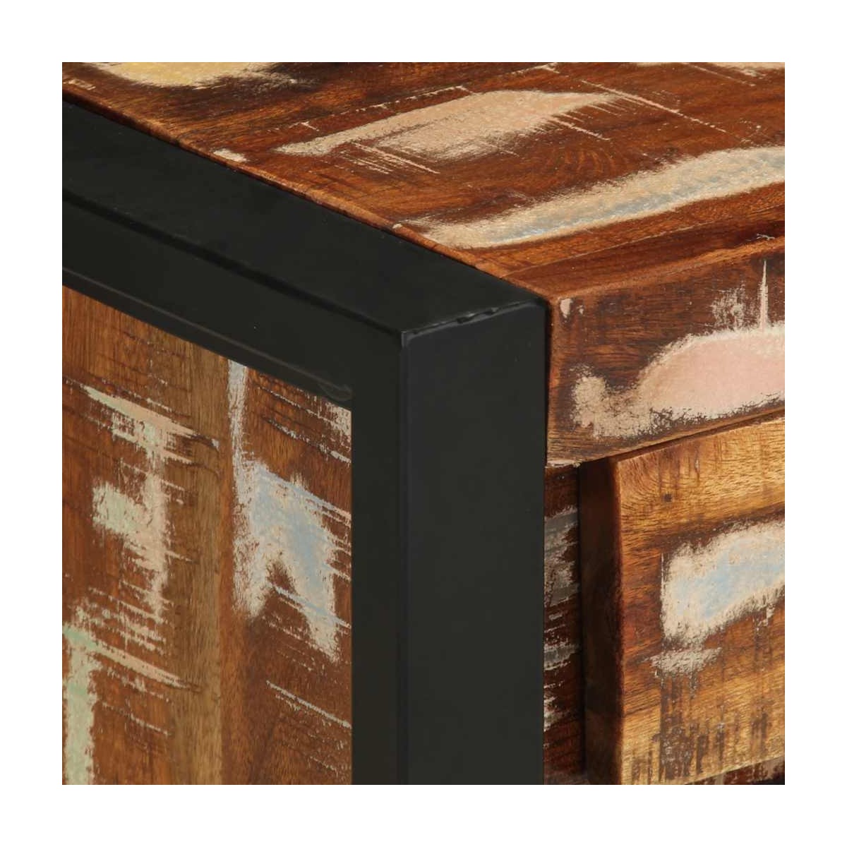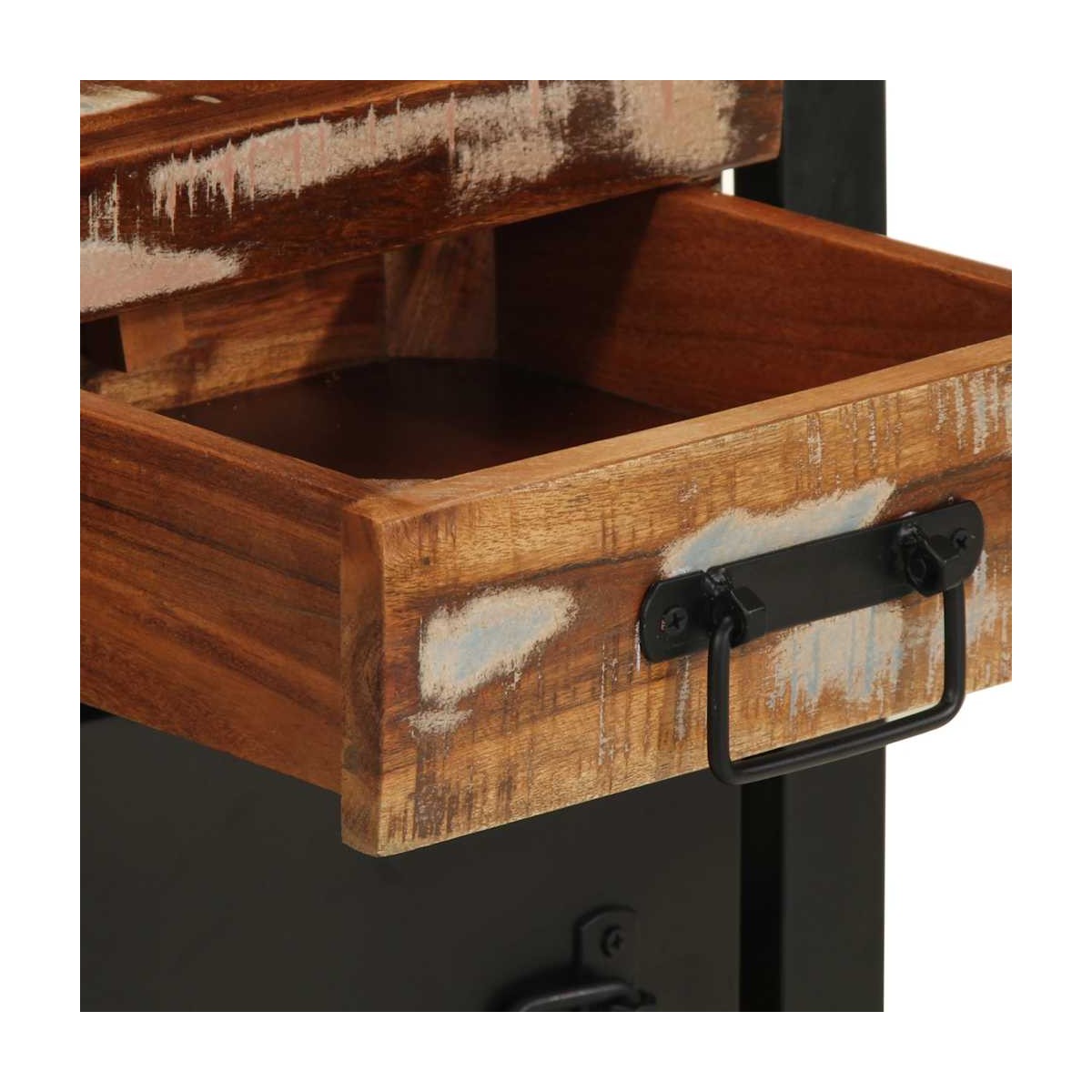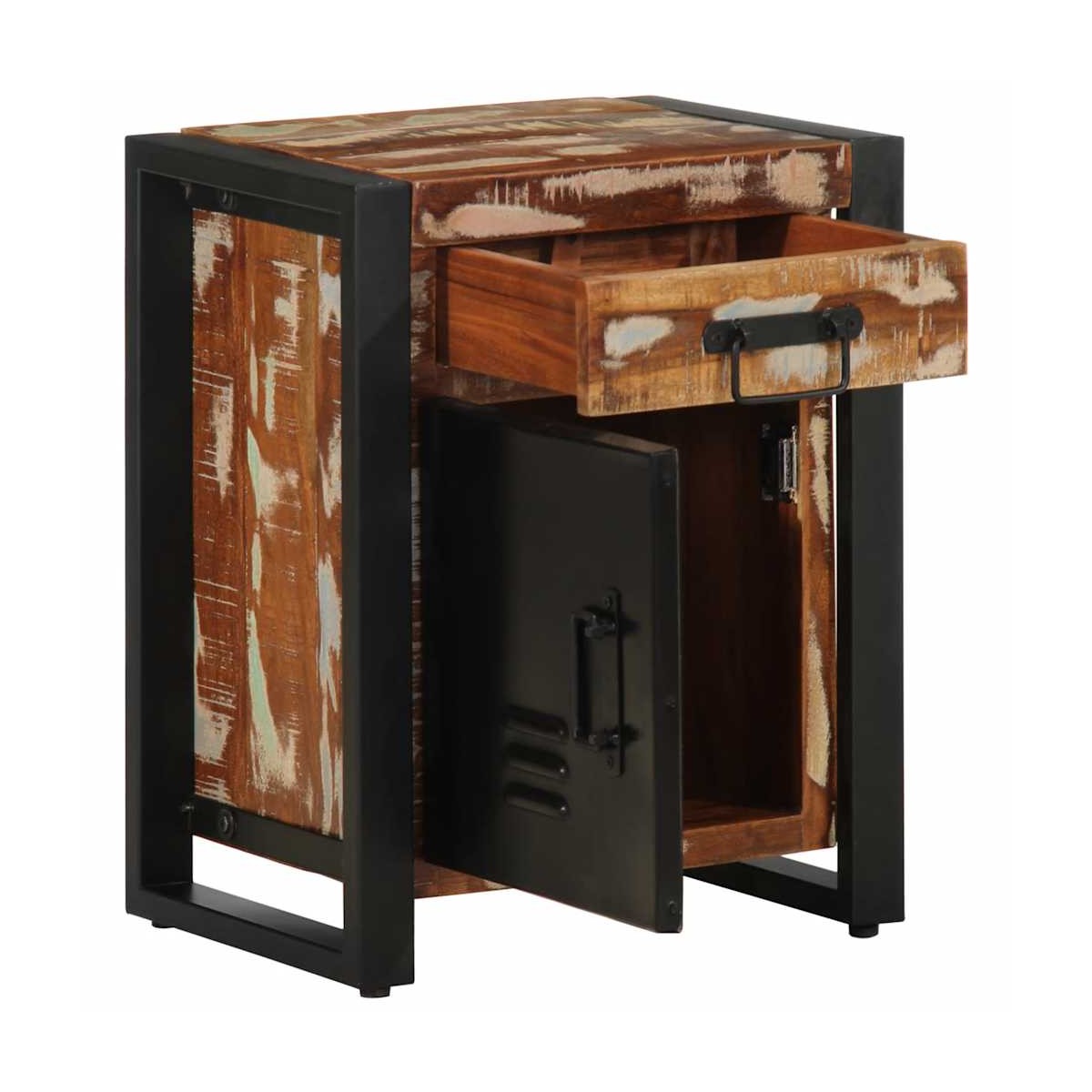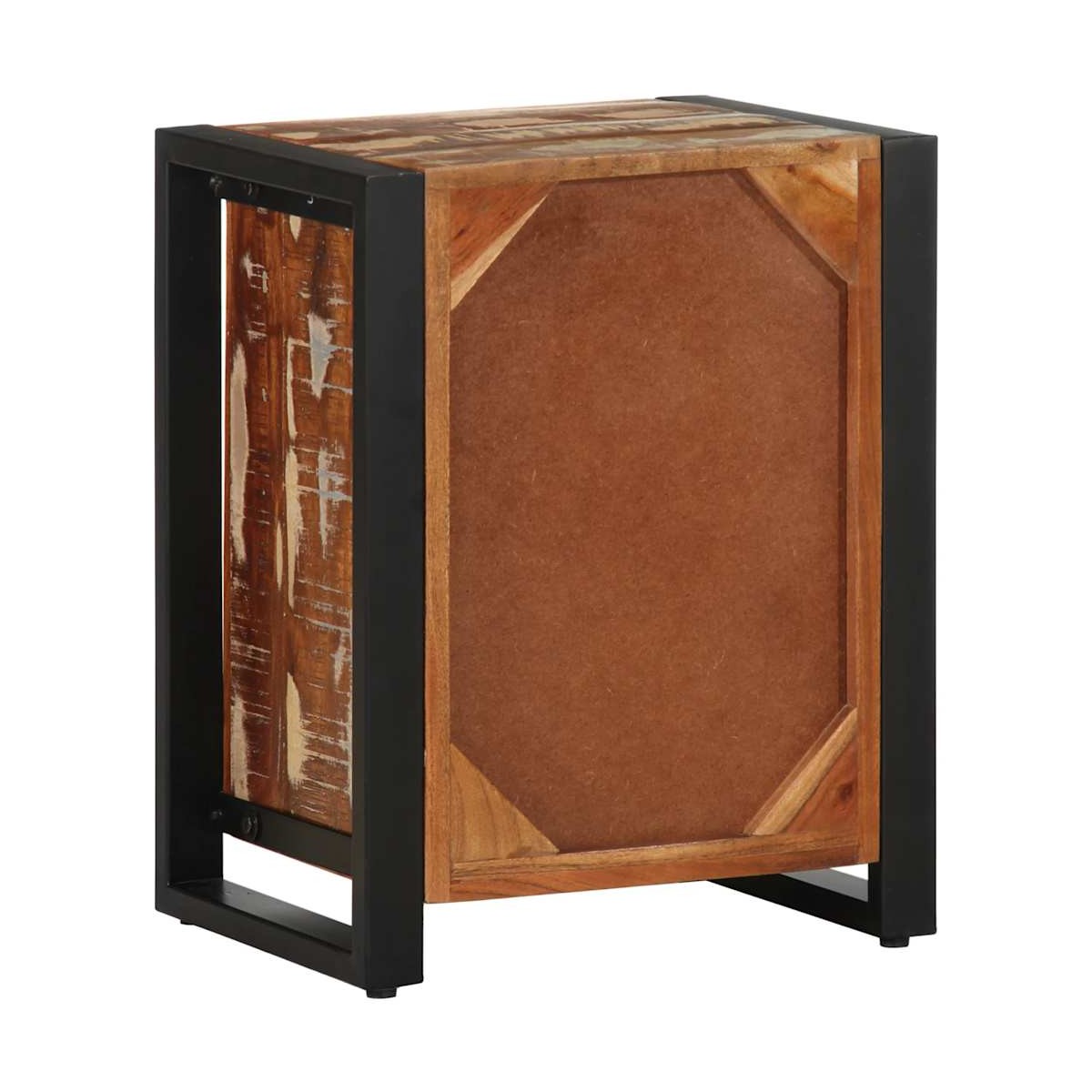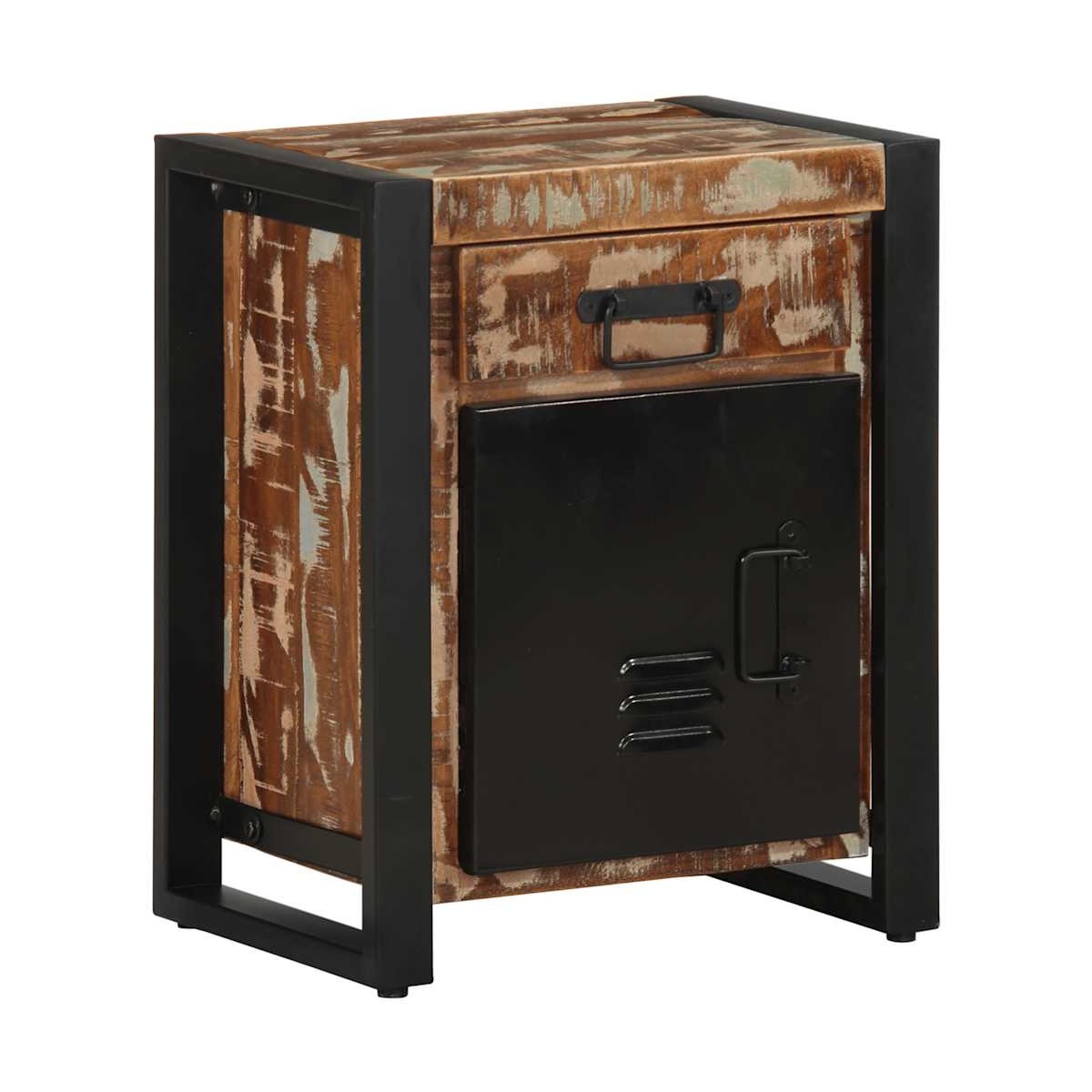 Esta mesita de noche, con un diseño elegante, es un aporte atemporal para la decoración de tu hogar. Madera maciza de mango: La madera maciza de mango es una madera dura, tropical y resistente, que sirve para fabricar muebles robustos. Las bonitas vetas de la madera hacen que cada mueble sea ligeramente diferente al resto. Hecho de madera maciza de mango, el mueble es duradero y estable. Amplio espacio de almacenaje: La mesita de noche ofrece un práctico espacio de almacenaje para mantener las cosas organizadas y al alcance de la mano. Superficie estable: La superficie de este mueble auxiliar es perfecta para exponer objetos decorativos, marcos de fotos y plantas. Patas resistentes: Las patas de hierro aumentan la robustez y estabilidad de los muebles del dormitorio. Advertencia:Para evitar que vuelque, este producto debe usarse con el dispositivo de fijación a la pared suministrado.