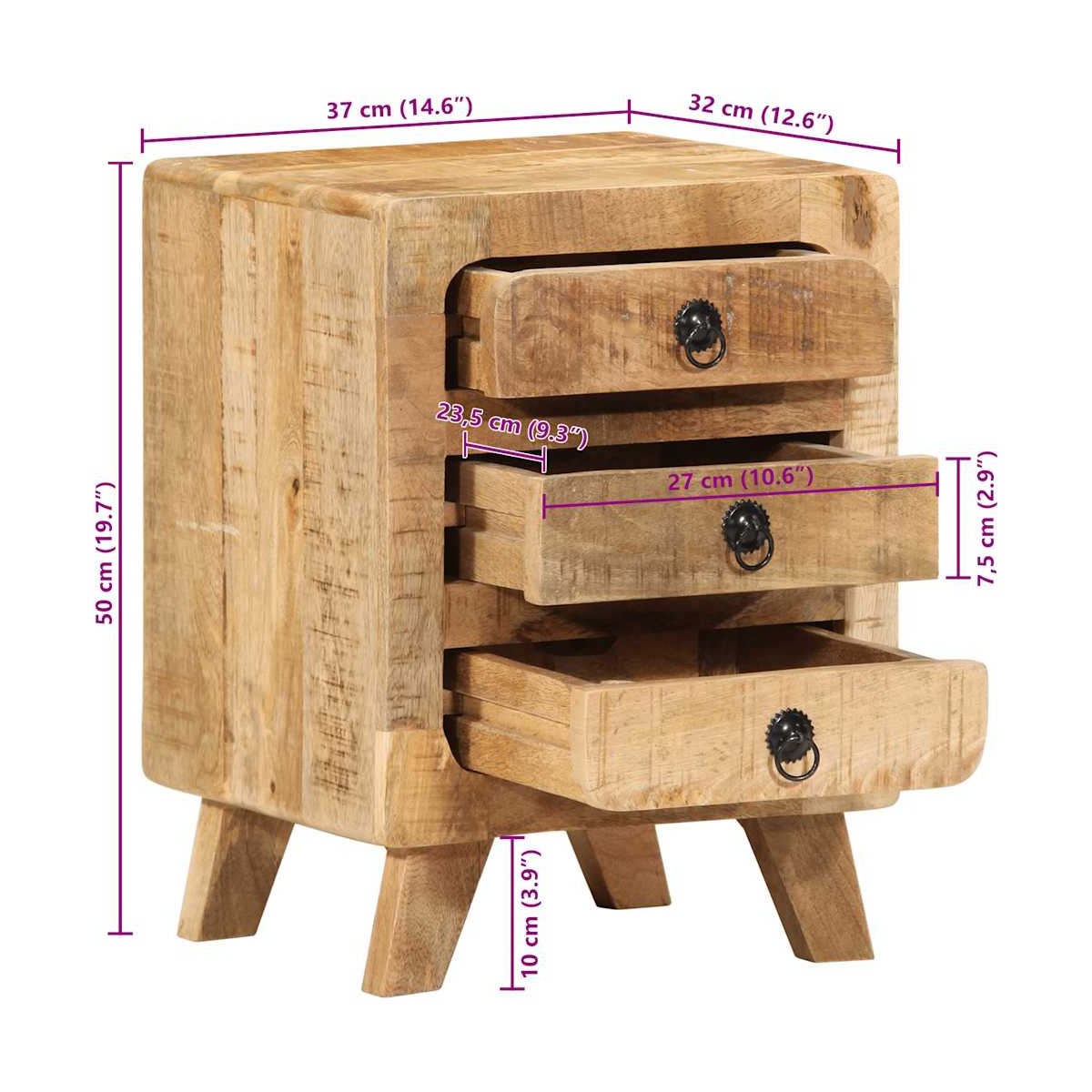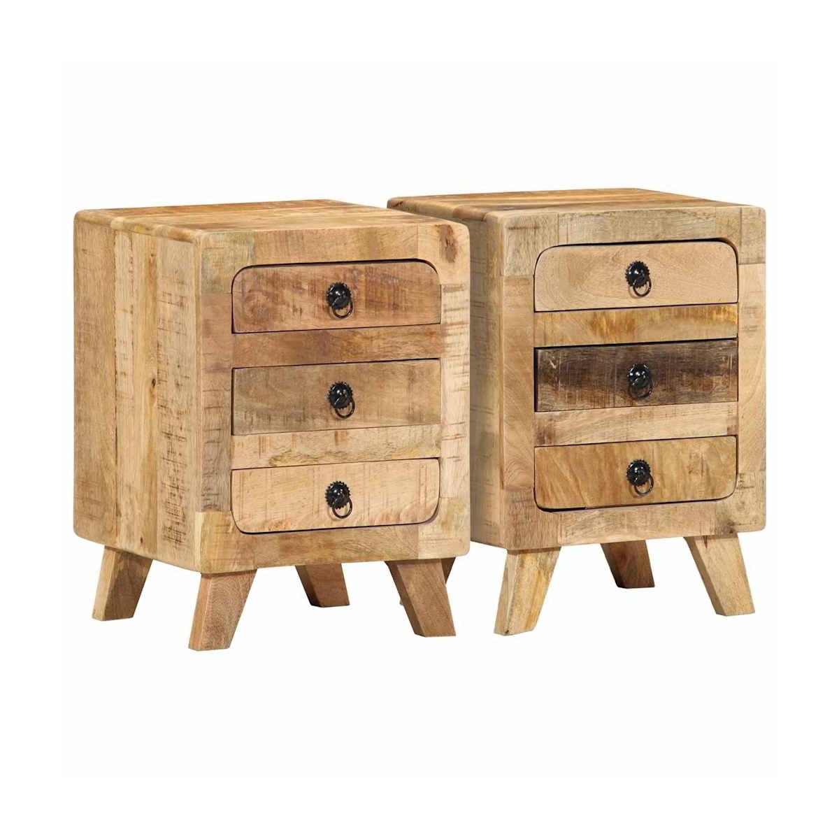 ¡Introduce un aire de encanto en la decoración de tu habitación con estas elegantes mesitas de noche! Material robusto y estable: La madera maciza de mango, una madera dura tropical robusta, es muy apreciada para la fabricación de muebles por su excepcional durabilidad y resistencia. Las bonitas vetas de la madera hacen que cada mueble sea ligeramente diferente al resto.Patas de madera: La mesita de noche está sostenida por resistentes patas de madera, lo que garantiza estabilidad, seguridad y firmeza.Amplio espacio de almacenamiento: La mesilla de noche ofrece un amplio espacio de almacenamiento para revistas, libros, gafas y otros objetos esenciales para la hora de dormir, manteniéndolos organizados y al alcance de la mano.Superficie resistente: La robusta parte superior de la mesilla de noche es perfecta para colocar lámparas de mesa, despertadores, libros, marcos de fotos, pequeñas plantas en macetas, adornos u otros objetos esenciales.Fácil de mantener: Gracias a su superficie lisa, la mesita de noche es fácil de limpiar con un paño húmedo y requiere menos mantenimiento. Información útil:Cada artículo es único, con variaciones de color y veta. La entrega es aleatoria garantizando la exclusividad y la individualidad del producto.