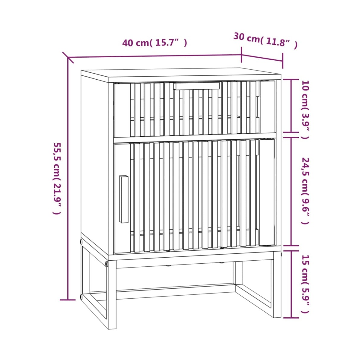 - Dimensiones (cada una): 40 x 30 x 55,5 cm (ancho x profundo x alto)