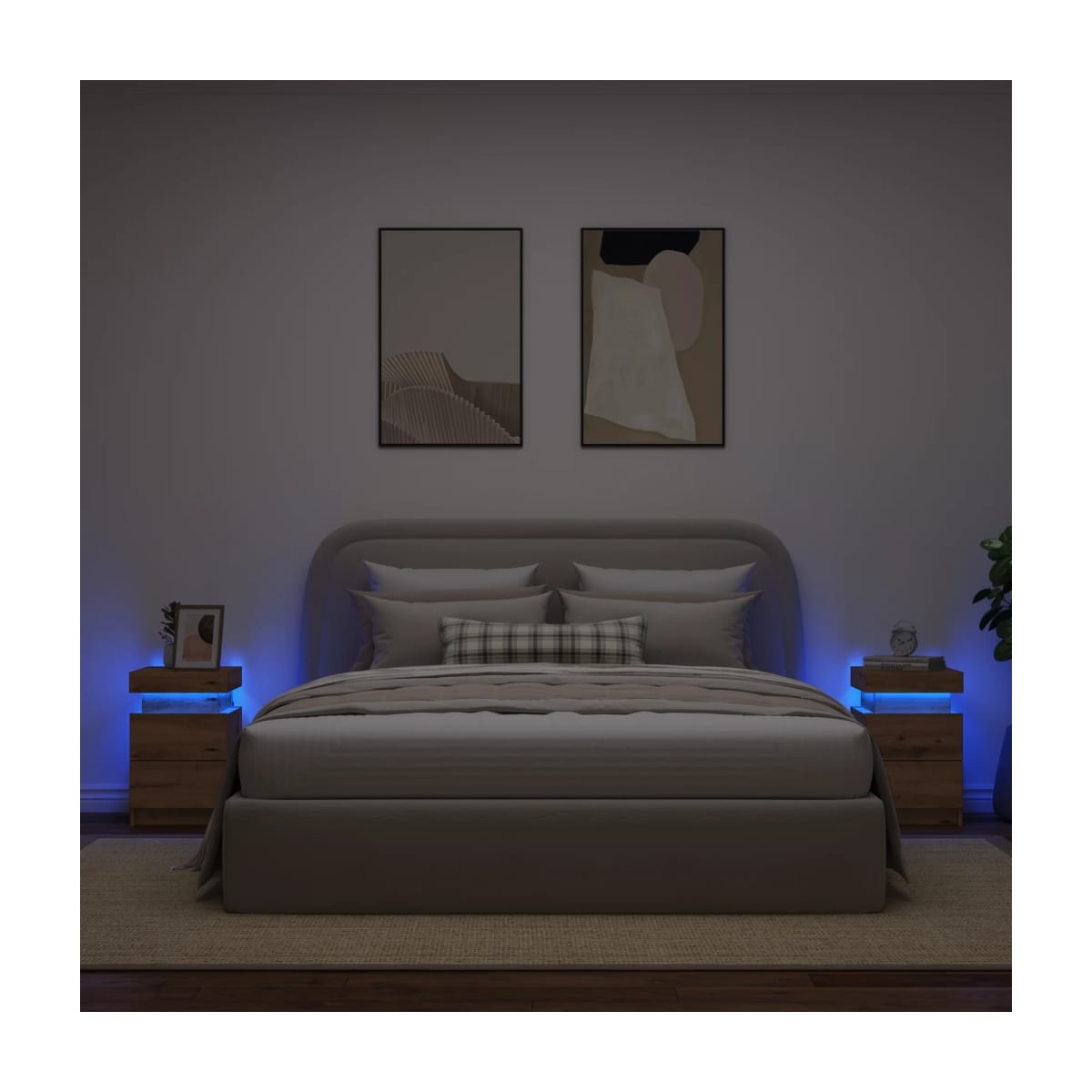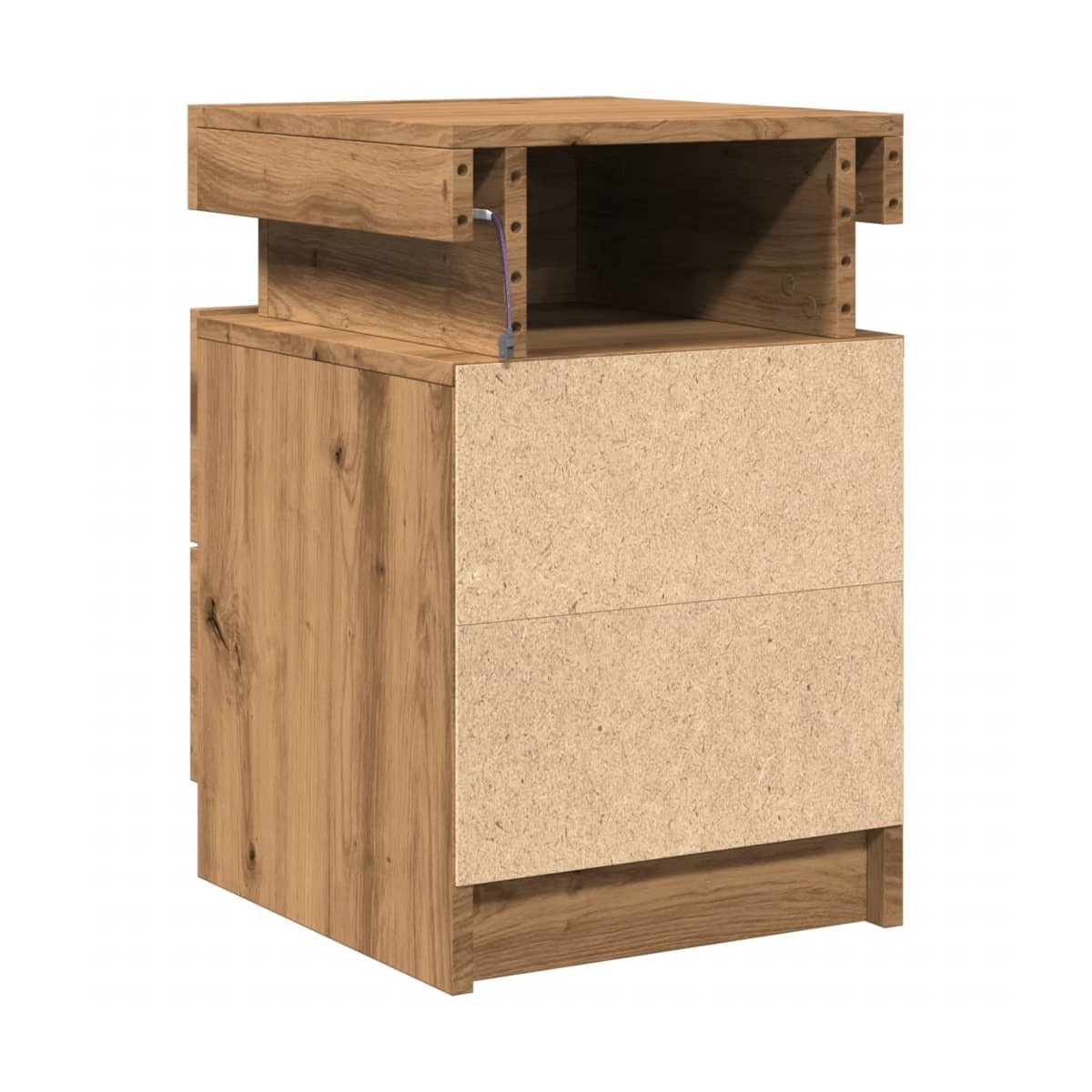 Con un diseño elegante, estas mesitas de noche encajan fácilmente en tu dormitorio o sala de estar y agregan un encanto atemporal a tu decoración. Material duradero:La madera de ingeniería tiene una calidad excepcional, con una superficie lisa y también con fuerza, estabilidad y resistencia a la humedad.Amplio espacio de almacenamiento: La mesita de noche con cajón ofrece un amplio espacio de almacenamiento para mantener tus diversos artículos de uso diario bien organizados y al alcance.Luces LED RGB para un ambiente agradable: Esta mesita cuenta con luces LED que se pueden ajustar fácilmente para crear un espectáculo de luces personalizado. Puedes personalizar los modos, los colores y el brillo para mejorar el ambiente de tu espacio interior.Fácil de mantener: Gracias a su superficie lisa, el armario auxiliar es fácil de limpiar con un paño húmedo y requiere menos mantenimiento. Advertencia:Para evitar que vuelque, este producto debe usarse con el dispositivo de fijación a la pared suministrado.Información útil:El producto tiene un conector USB que necesita una fuente de alimentación USB certificada de 5 V (no incluida).