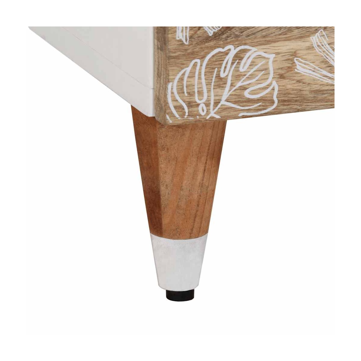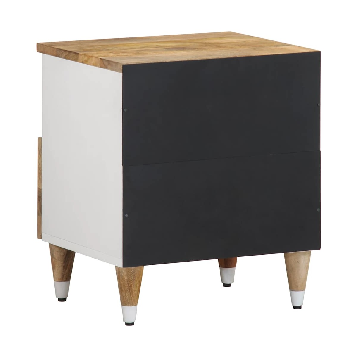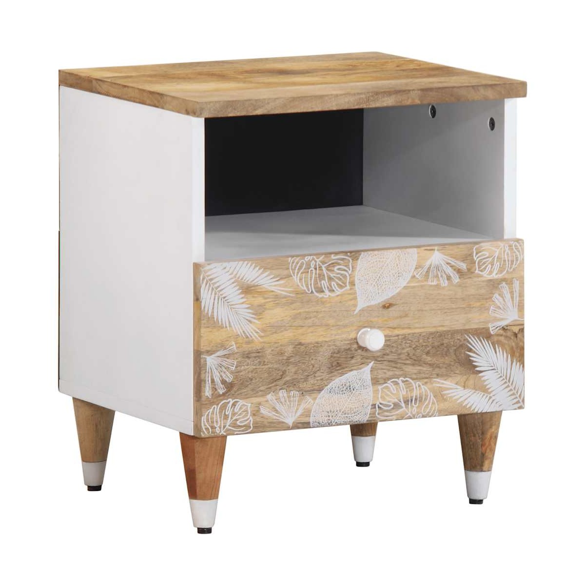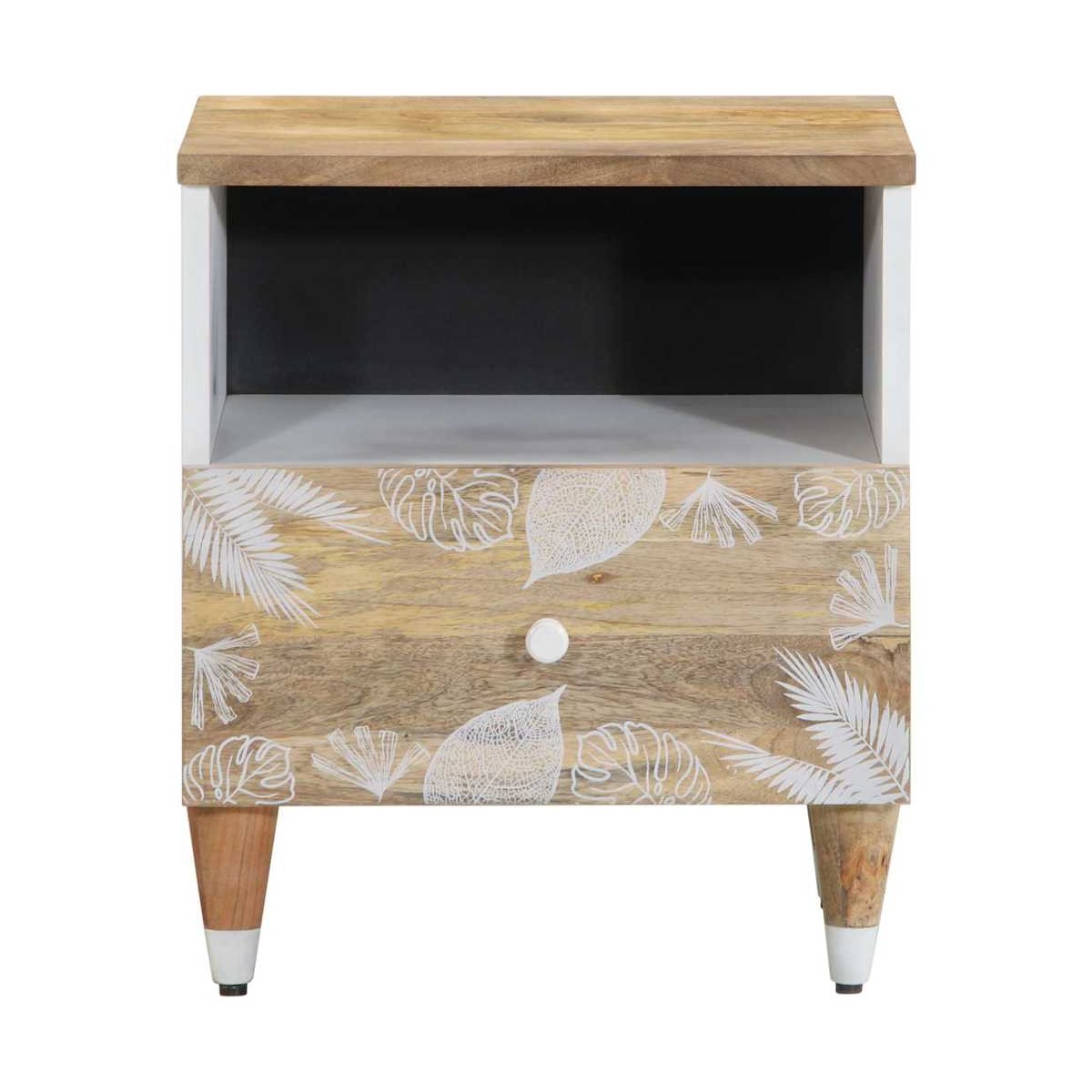 Estas mesitas de noche, con un diseño elegante, son un aporte atemporal para la decoración de tu hogar. Material robusto y estable: La madera maciza de mango, una madera dura tropical robusta, es muy apreciada para la fabricación de muebles por su excepcional durabilidad y resistencia. Las bonitas vetas de la madera hacen que cada mueble sea ligeramente diferente al resto.Amplio espacio de almacenamiento: la mesita de noche ofrece un amplio espacio de almacenamiento para revistas, libros, vasos y otros elementos esenciales para la hora de dormir, manteniéndolos organizados y al alcance.Uso versátil: Esta mesita de noche no es solo para el dormitorio, también se puede utilizar como mesa auxiliar en la sala de estar o espacio de almacenamiento adicional en cualquier habitación, adaptándose perfectamente a sus necesidades.Patas de madera: Esta cama está sostenida por robustas patas, que garantizan estabilidad, seguridad y firmeza. Información útil:Cada artículo es único, con variaciones de color y veta. La entrega es aleatoria garantizando la exclusividad y la individualidad del producto.