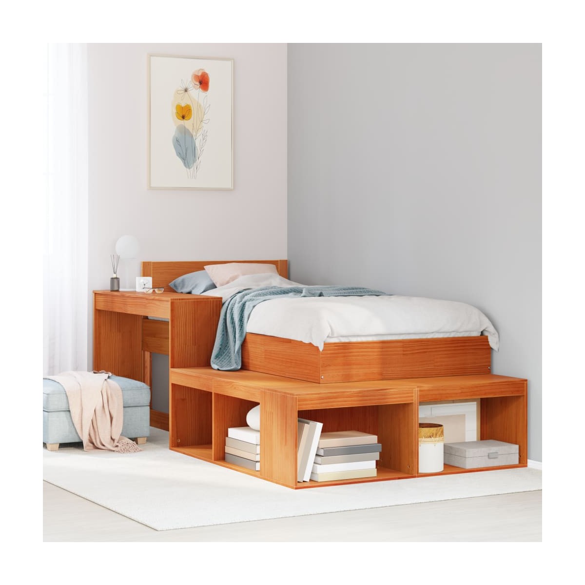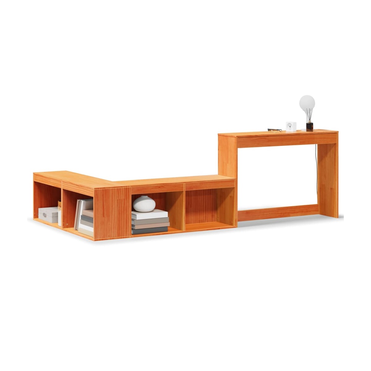 Esta versátil mesilla de noche de madera combina una unidad de almacenamiento y un escritorio en uno, ofreciendo una solución de almacenamiento eficiente en espacio para tu dormitorio. Estructura estable y duradera: La madera de pino maciza es conocida por su resistencia y durabilidad. Sus vetas rectas y sus característicos nudos contribuyen a su encanto rústico.Diseño multifuncional: Este versátil mueble de dormitorio integra una unidad de almacenamiento con un escritorio, creando el espacio de trabajo perfecto y proporcionando un amplio almacenamiento para mantener todas tus necesidades a la hora de dormir fácilmente accesibles.Dos formas de montaje: Este escritorio ofrece opciones de montaje flexibles, que te permiten colocarlo en el lado izquierdo o derecho para adaptarlo a tu espacio de trabajo.Ahorra espacio: Este armario en forma de L se ajusta perfectamente a la cama, creando un cerramiento parcial para maximizar el espacio del dormitorio. Es una opción ideal para espacios reducidos. Información útil:La entrega incluye únicamente una mesilla de noche con escritorio. El marco de la cama no está incluido en la entrega.