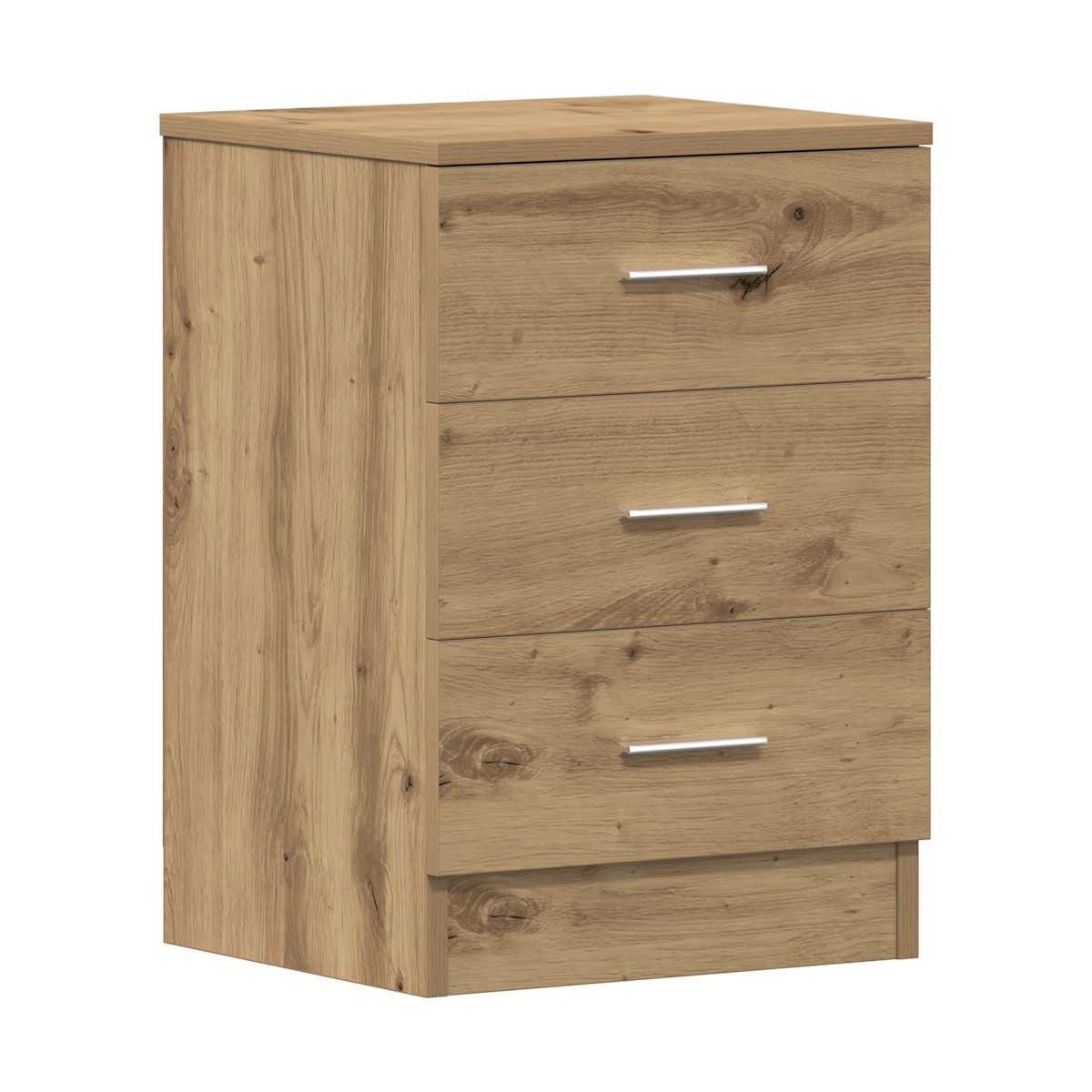 ¡Estas clásicas mesitas de noche, con un diseño atractivo y práctico, son una solución de almacenaje eficaz y un adorno maravilloso para la casa! Material estable y duradero: La madera de ingeniería es un material duradero y estable con una superficie lisa que es resistente a la humedad, la deformación y la rotura, lo que la convierte en una opción fiable para una variedad de proyectos.Amplio espacio de almacenamiento: el armario de cama tiene tres cajones para brindar suficiente espacio para mantener sus artículos pequeños organizados y al alcance de la mano.Superficie resistente: La robusta parte superior de la mesilla de noche es perfecta para colocar lámparas de mesa, despertadores, libros, marcos de fotos, pequeñas plantas en macetas, adornos u otros objetos esenciales.Uso versátil: Esta mesita de noche no es solo para el dormitorio, también se puede utilizar como mesa auxiliar en la sala de estar o espacio de almacenamiento adicional en cualquier habitación, adaptándose perfectamente a sus necesidades.Fácil de mantener: Gracias a su superficie lisa, la mesita de noche es fácil de limpiar con un paño húmedo y requiere menos mantenimiento.