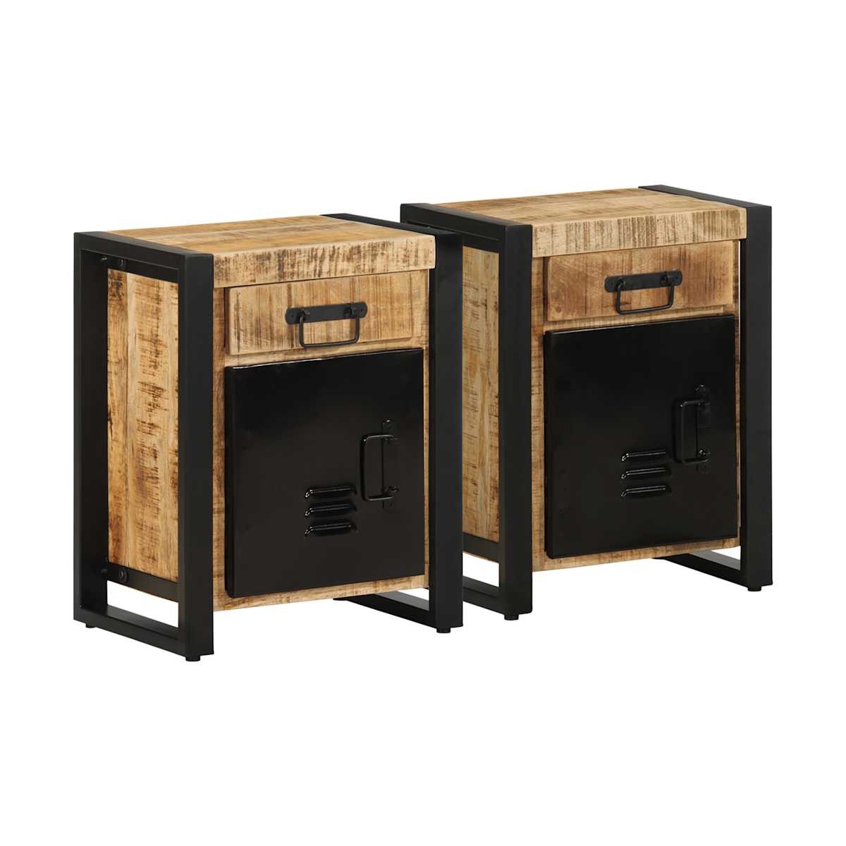 Estas mesitas de noche, con un diseño elegante, son un aporte atemporal para la decoración de tu hogar. Madera maciza de mango: La madera maciza de mango es una madera dura, tropical y resistente, que sirve para fabricar muebles robustos. Las bonitas vetas de la madera hacen que cada mueble sea ligeramente diferente al resto. Hecho de madera maciza de mango, el mueble es duradero y estable. Amplio espacio de almacenaje: La mesita de noche ofrece un práctico espacio de almacenaje para mantener las cosas organizadas y al alcance de la mano. Superficie estable: La superficie de este mueble auxiliar es perfecta para exponer objetos decorativos, marcos de fotos y plantas. Patas resistentes: Las patas de hierro aumentan la robustez y estabilidad de los muebles del dormitorio. Advertencia:Para evitar que vuelque, este producto debe usarse con el dispositivo de fijación a la pared suministrado.