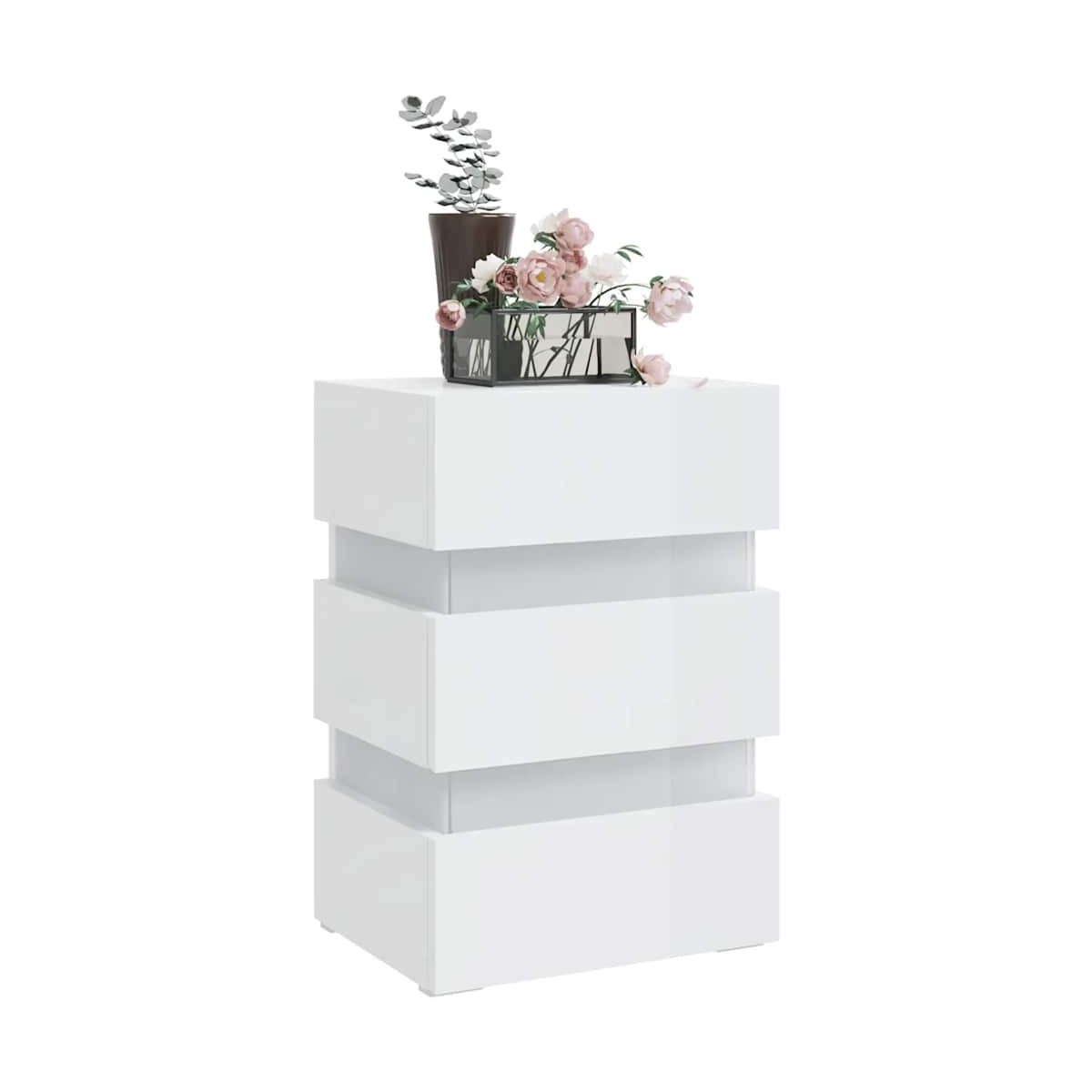 ¿Estás cansado de buscar a tientas en la oscuridad un interruptor de luz en medio de la noche? ¡Con esta mesita de noche LED, tu problema está resuelto! Hecha de madera contrachapada de calidad, la mesita de noche es estable y fácil de limpiar con un paño húmedo. Este mueble cama ofrece un amplio espacio de almacenamiento para mantener tus revistas, libros, controles remotos y otros artículos pequeños bien organizados y al alcance de la mano. Además, puedes agregar un estilo extra moderno con la luz LED que también se incluye. ¡Esta mesita de noche tiene todo lo que estás buscando! Nota: El producto tiene un conector USB, pero la fuente de alimentación USB de 5V certificada no está incluida.