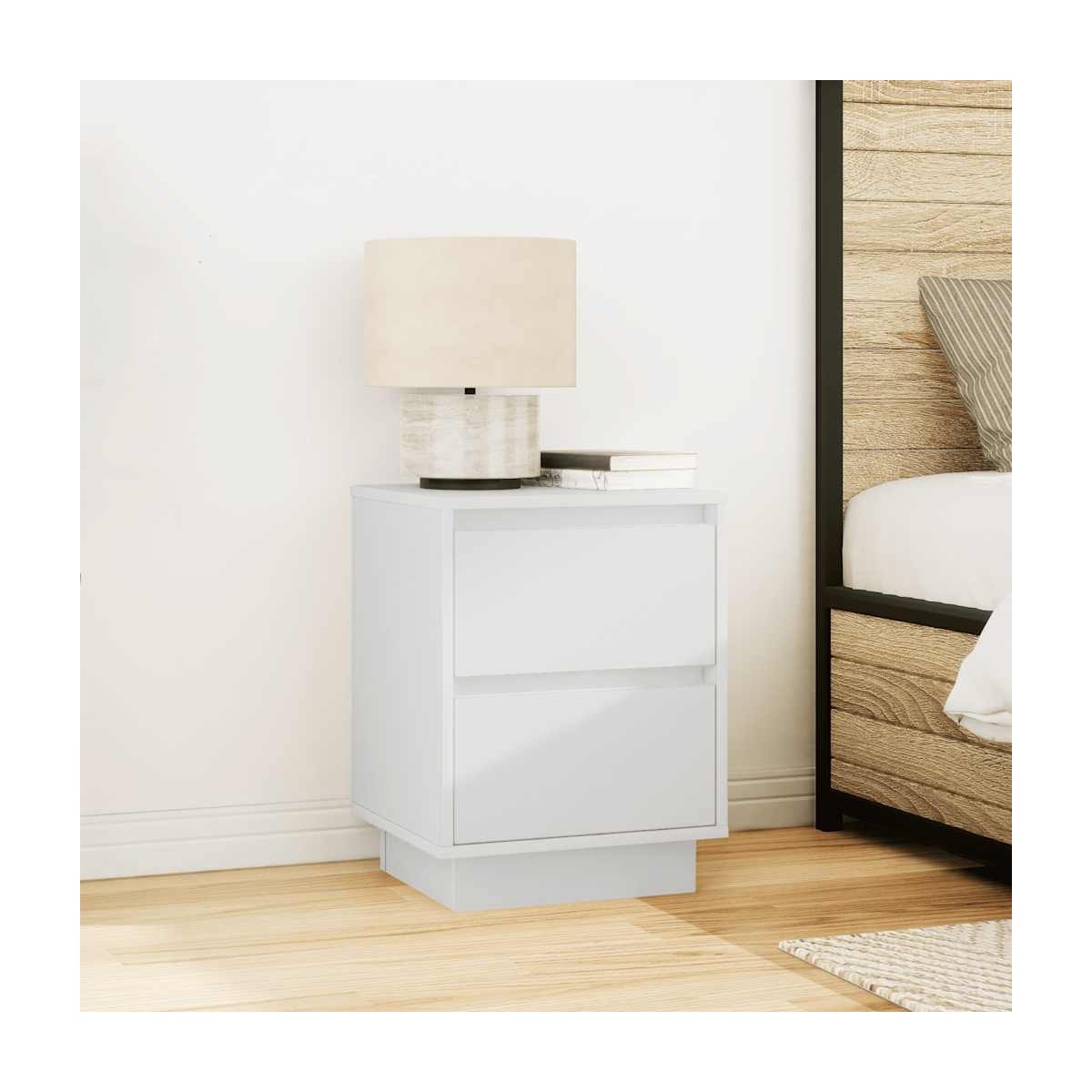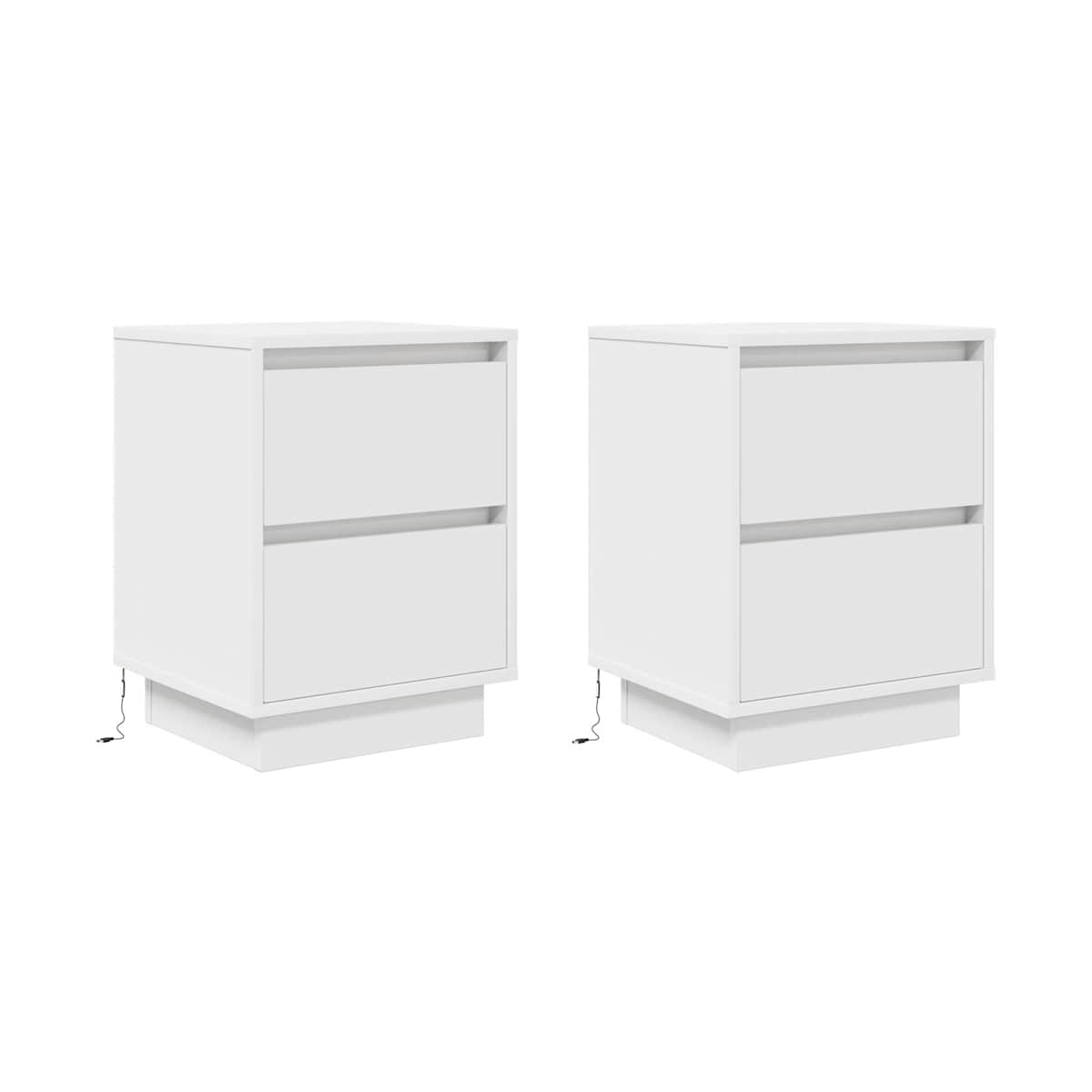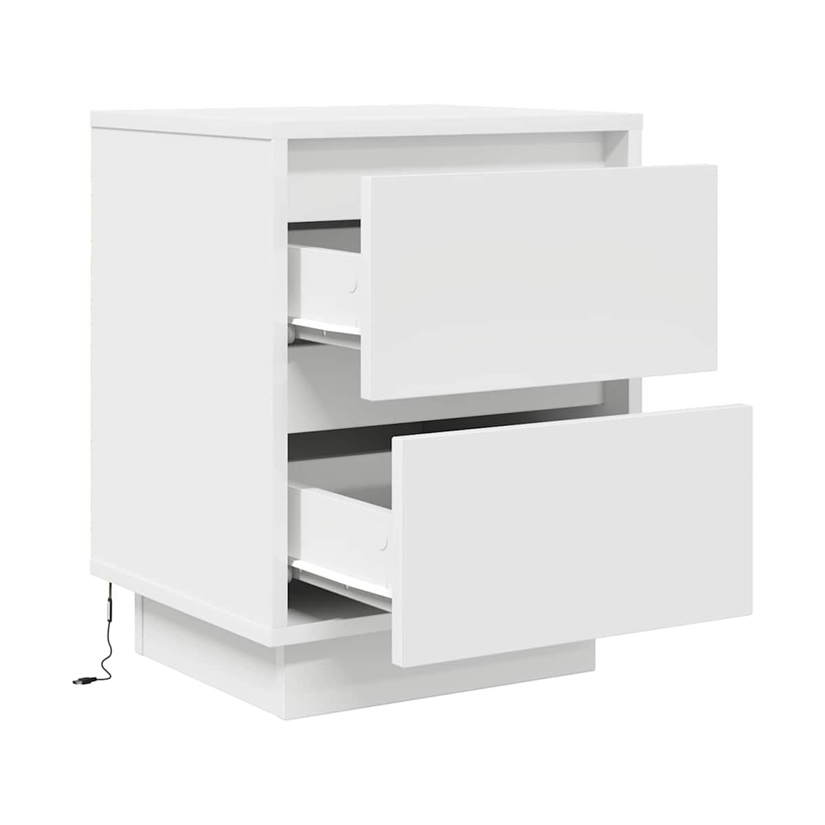 ¡Mejora tu dormitorio con estas mesitas de noche con luces LED! ¡Se complementan fácilmente con cualquier estilo de mobiliario de tu hogar! Material estable y duradero: La madera de ingeniería es un material duradero y estable con una superficie lisa que es resistente a la humedad, la deformación y la rotura, lo que la convierte en una opción fiable para una variedad de proyectos.Luces LED RGB para un ambiente agradable: las luces LED se pueden ajustar fácilmente para crear un espectáculo de luces personalizado. Puedes personalizar los modos, los colores y el brillo para mejorar el ambiente de tu espacio interior.Amplio espacio de almacenamiento: La mesilla de noche ofrece un amplio espacio de almacenamiento para revistas, libros, gafas y otros objetos esenciales para la hora de dormir, manteniéndolos organizados y al alcance de la mano.Superficie resistente: La robusta parte superior de la mesilla de noche es perfecta para colocar lámparas de mesa, despertadores, libros, marcos de fotos, pequeñas plantas en macetas, adornos u otros objetos esenciales.Fácil de mantener: Gracias a su superficie lisa, la mesita de noche es fácil de limpiar con un paño húmedo y requiere menos mantenimiento. Advertencia:Para evitar que vuelque, este producto debe usarse con el dispositivo de fijación a la pared suministrado. Información útil:El producto tiene un conector USB que necesita una fuente de alimentación USB certificada de 5 V (no incluida).
