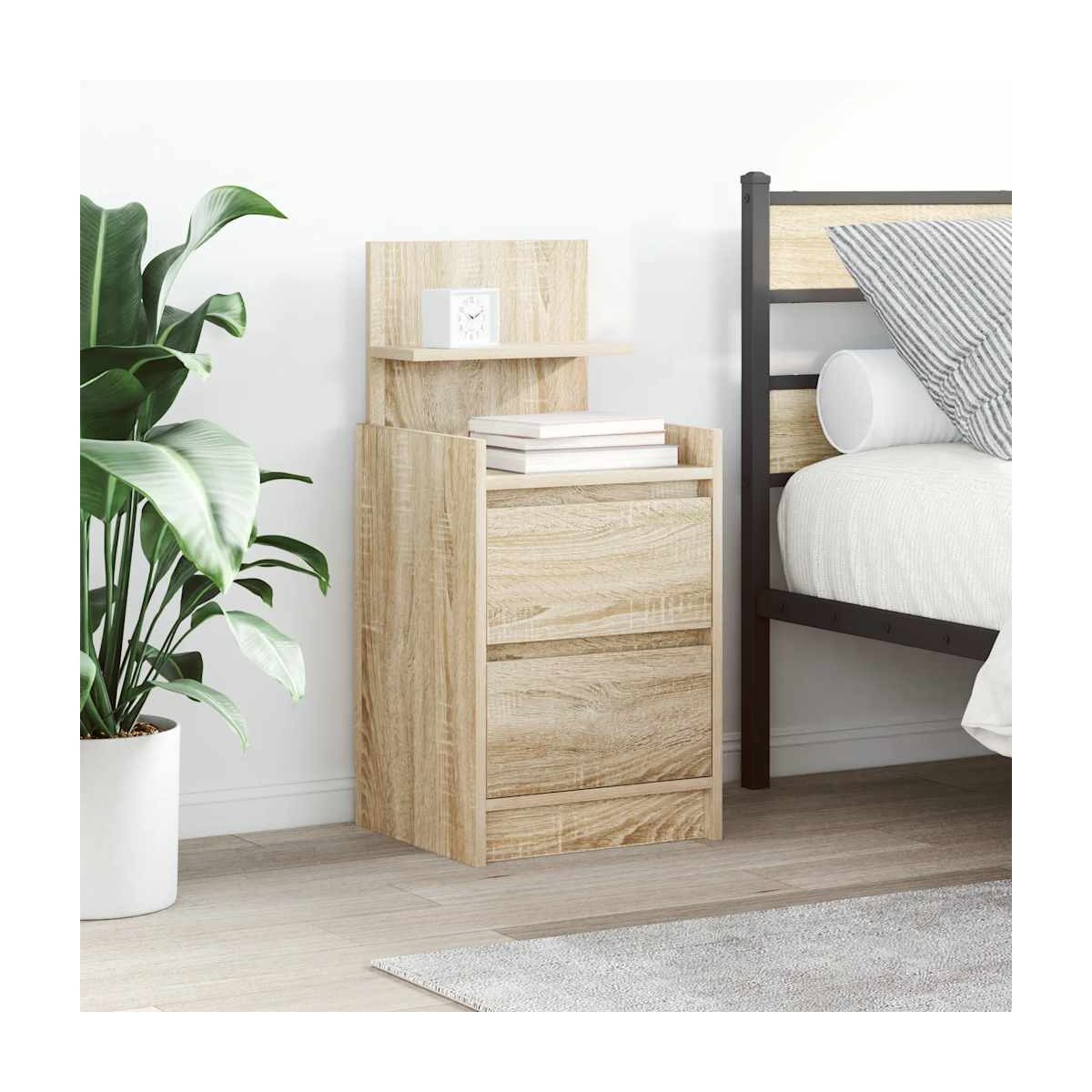 ¡Introduce un aire de encanto en la decoración de tu habitación con estas elegantes mesitas de noche! Material estable y duradero: La madera de ingeniería es un material duradero y estable con una superficie lisa que es resistente a la humedad, la deformación y la rotura, lo que la convierte en una opción fiable para una variedad de proyectos.Amplio espacio de almacenamiento: la mesita de noche ofrece un amplio espacio de almacenamiento para revistas, libros, vasos y otros elementos esenciales para la hora de dormir, manteniéndolos organizados y al alcance.Parte superior resistente: la parte superior resistente de la mesita de noche es perfecta para colocar lámparas de mesa, relojes despertadores, libros, marcos de fotos, pequeñas plantas en macetas, decoraciones u otros elementos esenciales.Fácil de mantener: Gracias a su superficie lisa, la mesita de noche es fácil de limpiar con un paño húmedo y requiere menos mantenimiento. Advertencia:Para evitar que vuelque, este producto debe usarse con el dispositivo de fijación a la pared suministrado.