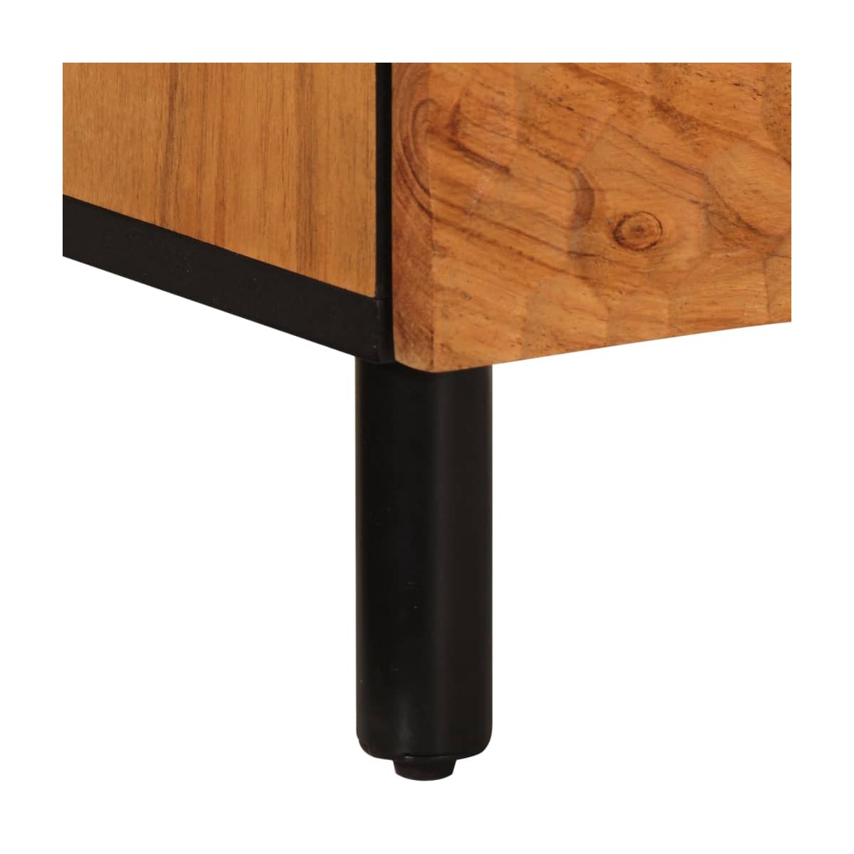 Estas mesitas de noche, con un diseño elegante, son un aporte atemporal para la decoración de tu hogar. Material de primera calidad: La madera maciza de acacia es un bonito material natural. La madera de acacia es una madera dura tropical, densa, robusta y duradera.Amplio espacio de almacenaje: La mesita de noche está diseñada con 1 cajón y 1 compartimento para guardar las cosas organizadas y al alcance.Superficie estable: La superficie de este mueble auxiliar es perfecta para exponer objetos decorativos, marcos de fotos y plantas.Patas resistentes: Las patas de hierro aumentan la robustez y estabilidad de los muebles del dormitorio.