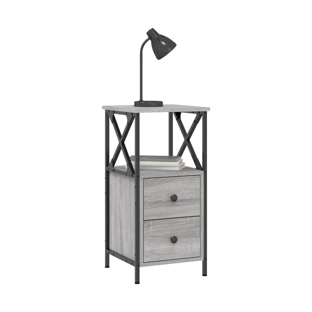 Con un diseño sencillo y compacto, esta mesita de noche encaja fácilmente en el dormitorio o el salón y añade un encanto atemporal a la casa. Material duradero: La madera contrachapada tiene una calidad excepcional, con una superficie lisa y también cuenta con fuerza, estabilidad y resistencia a la humedad. Estructura robusta: La estructura de hierro garantiza su solidez y estabilidad.Amplio espacio de almacenaje: La mesita de noche ofrece un amplio espacio de almacenaje para mantener tus artículos de uso diario bien organizados y al alcance.Función expositora: También puedes colocar tus fotos favoritas, adornos o flores en la superficie de esta mesita auxiliar para alegrarte la vida.Patas ajustables: Cuatro patas ajustables con almohadillas de plástico mantienen el armario auxiliar equilibrado en suelo irregular y aumentan la estabilidad. Advertencia:Para evitar que vuelque, este producto debe usarse con el dispositivo de fijación a la pared incluido.