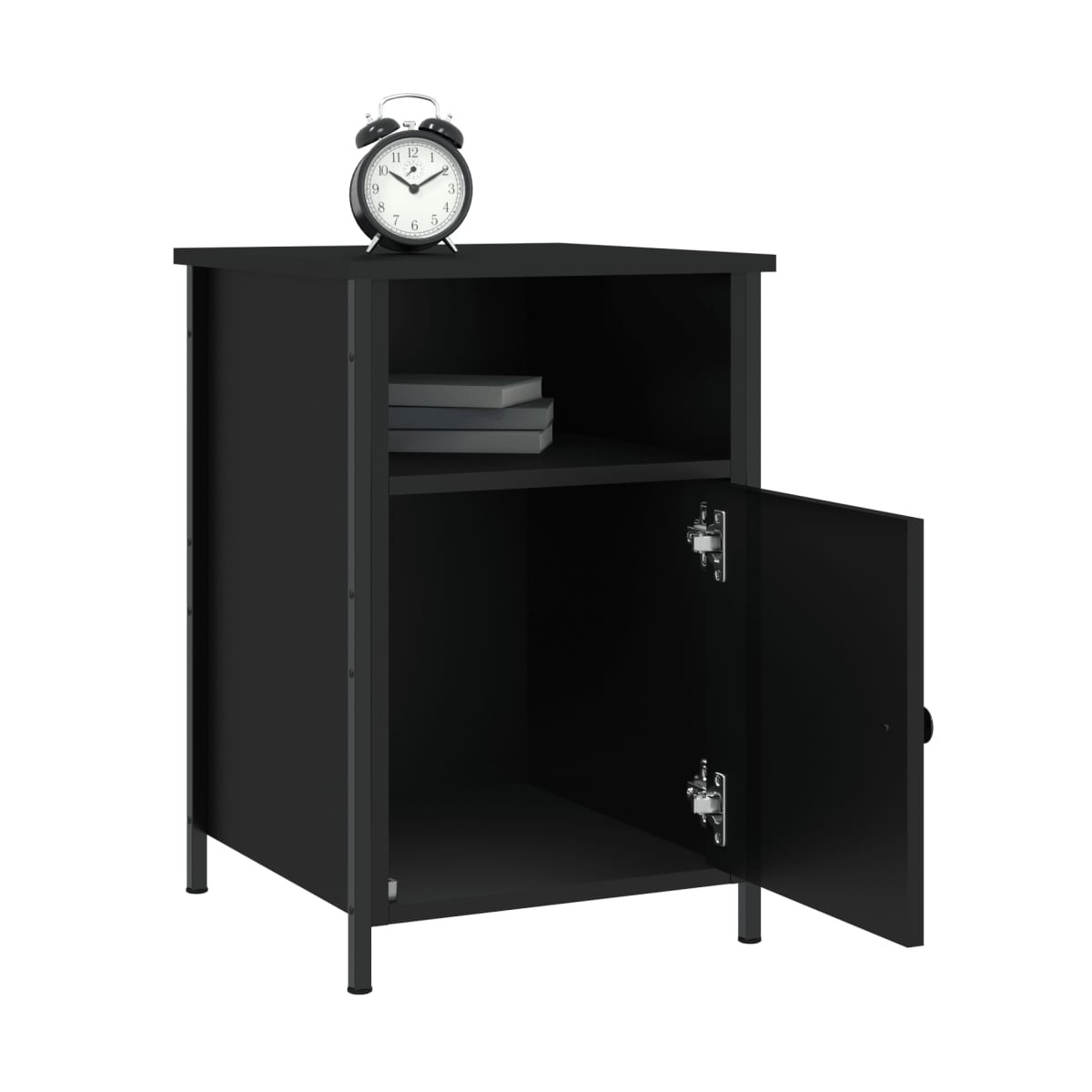 Estas mesitas de noche, con un diseño elegante, son un aporte atemporal para la decoración de tu hogar. Material duradero: La madera contrachapada tiene una calidad excepcional, con una superficie lisa y también cuenta con fuerza, estabilidad y resistencia a la humedad.Amplio espacio de almacenaje: El armario ofrece un amplio espacio de almacenamiento para mantener tus diversos artículos de uso diario bien organizados y al alcance.Tornillo regulable: Puedes ajustar la altura del tornillo negro de las patas con el fin de mantener estable la mesita de noche sobre suelos irregulares.Estructura robusta: Las estructuras de hierro garantizan la robustez y estabilidad del mueble auxiliar.Función expositora: También puedes colocar tus fotos favoritas, adornos o flores en la superficie de esta mesita de noche para alegrarte la vida. Advertencia:Para evitar que vuelque, este producto debe usarse con el dispositivo de fijación a la pared incluido.