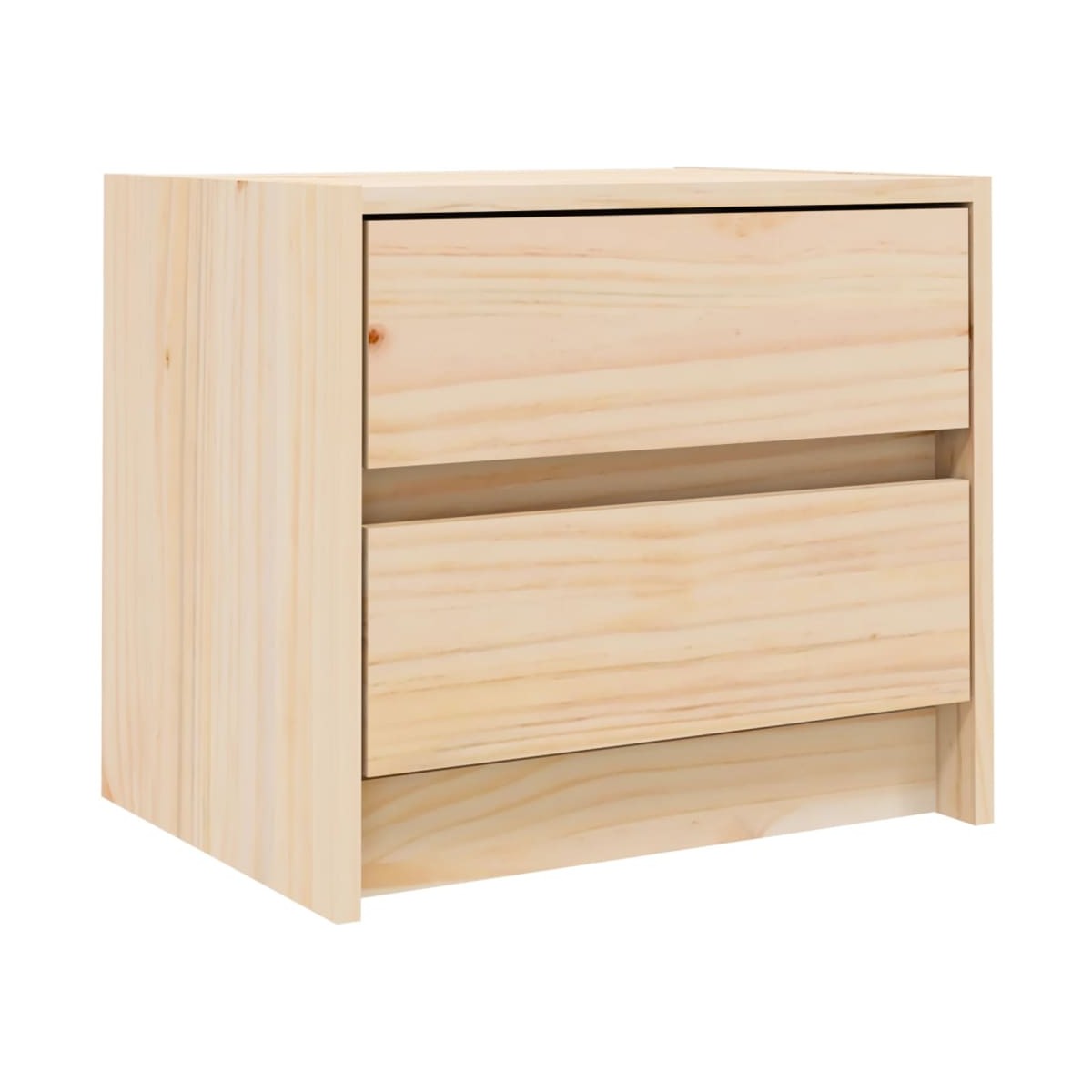 Estas mesitas de noche de madera con un diseño elegante son un complemento atemporal para la decoración de tu hogar. Material duradero: La madera maciza de pino es un hermoso material natural. La madera de pino tiene vetas rectas, y los nudos dan al material su distintivo aspecto rústico.Amplio espacio de almacenamiento: Equipada con 2 cajones, esta mesita de noche ofrece un práctico espacio de almacenamiento para guardar bien organizados y al alcance de la mano revistas, libros, mandos a distancia y otros objetos pequeños.Superficie estable: La superficie de este mueble auxiliar es perfecta para exponer objetos decorativos, marcos de fotos y plantas. Información útil:Cada artículo es único, con variaciones de color y grano. La entrega es aleatoria garantizando la exclusividad y la individualidad del producto.