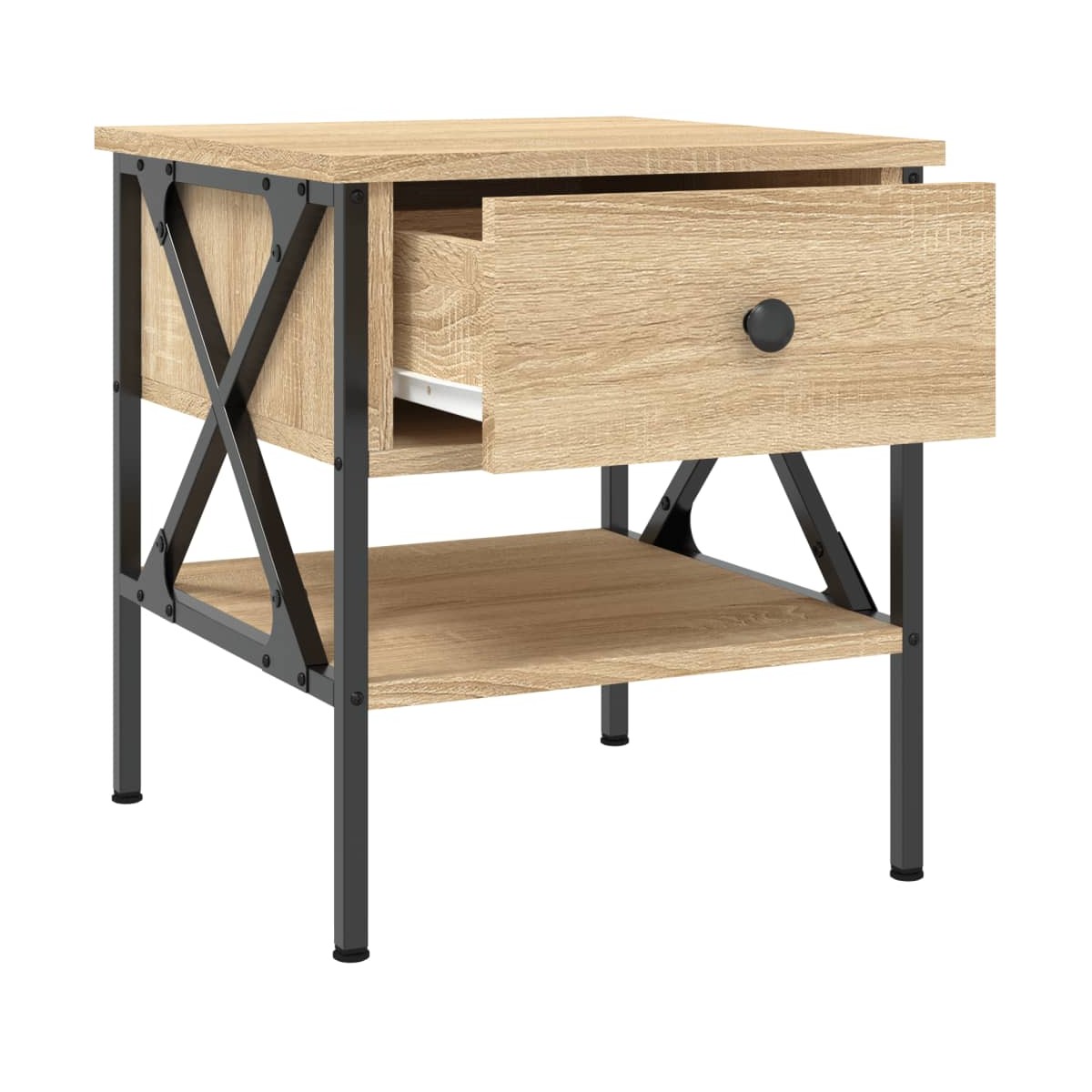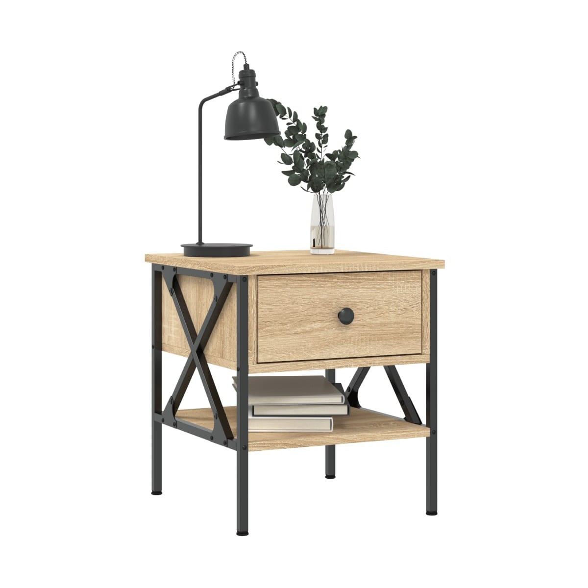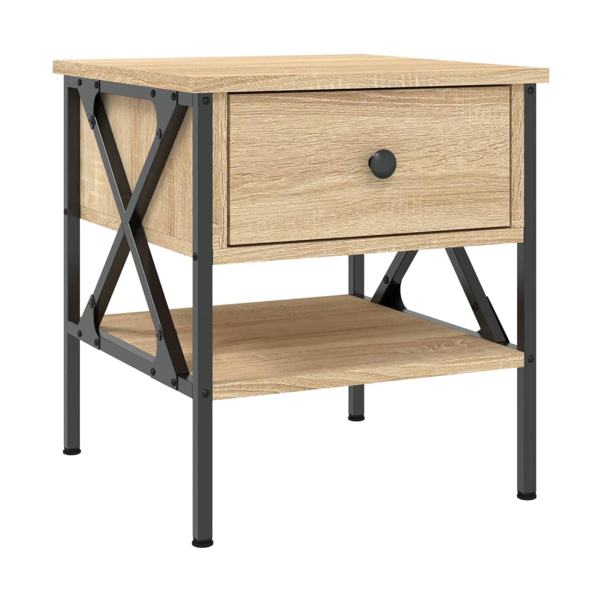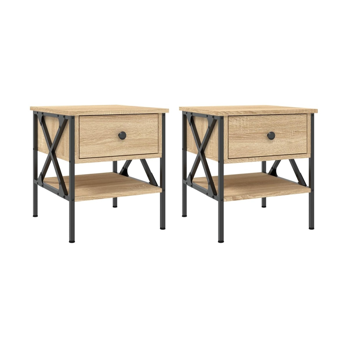 Estas mesitas de noche con un diseño industrial son un complemento atemporal para la decoración de la casa. Material duradero: La madera de ingeniería tiene una calidad excepcional, con una superficie lisa y también cuenta con fuerza, estabilidad y resistencia a la humedad.Estructura robusta: La estructura de hierro de la mesita de noche garantiza su solidez y estabilidad.Amplio espacio de almacenaje: La mesilla de noche ofrece un amplio espacio de almacenaje para mantener tus artículos de uso diario bien organizados y al alcance.Patas regulables: La mesita de noche está equipada con 4 patas regulables que protegen el suelo de los arañazos y la mantienen estable en suelos irregulares.Función expositora: También puedes colocar tus fotos favoritas, adornos o flores en la superficie de esta mesita de noche para alegrarte la vida.