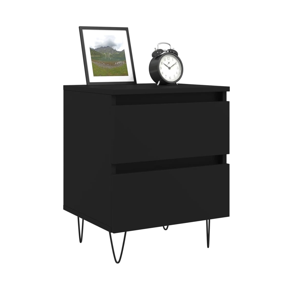 Esta mesita de noche, con un diseño elegante, es un aporte atemporal para la decoración de tu hogar. Material duradero: La madera de ingeniería es de una buena calidad con superficie lisa y también se caracteriza por su fuerza, estabilidad y resistencia a la humedad. Hecha de madera de ingeniería, la mesita de noche es fácil de limpiar con un paño húmedo.Amplio espacio de almacenaje: Equipada con 2 cajones, esta mesita de noche ofrece un práctico espacio de almacenaje para guardar bien organizados y al alcance de la mano revistas, libros, mandos a distancia y otros objetos pequeños.Superficie estable: La estable superficie de la mesita de noche se puede usar para colocar objetos decorativos como marcos de fotos y plantas. Advertencia:Para evitar que vuelque, este producto debe usarse con el dispositivo de fijación a la pared incluido.