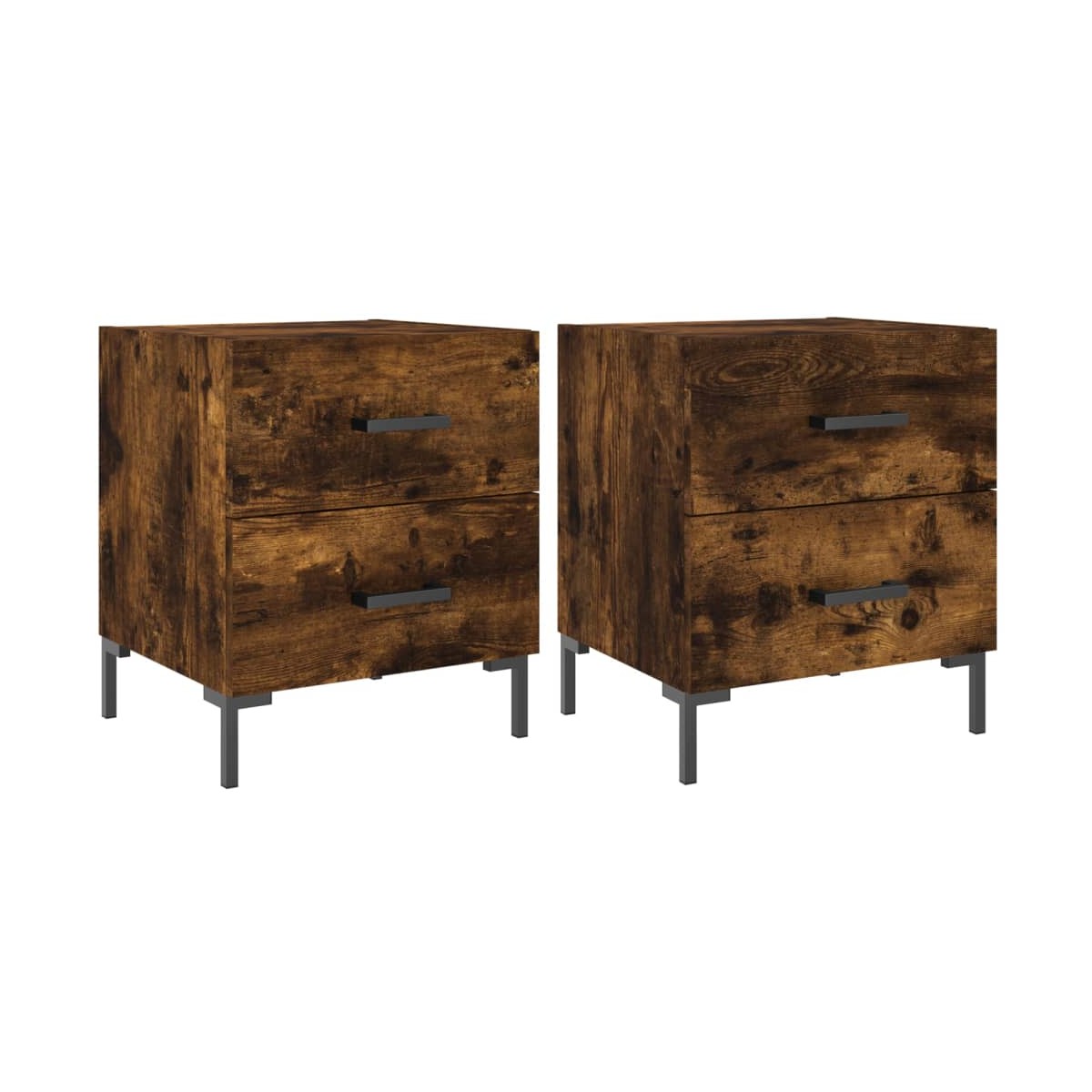 ¡Da un toque de encanto moderno a la casa con estas mesitas de noche! Material duradero: La madera contrachapada tiene una calidad excepcional, con una superficie lisa y también cuenta con fuerza, estabilidad y resistencia a la humedad. Almacenaje amplio: La mesita de noche tiene cajones, que ofrecen un amplio espacio de almacenaje para mantener al alcance libros, aparatos multimedia y otros objetos.Función expositora: También puedes colocar tus fotos favoritas, adornos o flores en la superficie de esta mesita auxiliar para alegrarte la vida. Patas de metal: Las patas metálicas añaden un estilo tranquilo a la casa a la vez que garantizan la estabilidad.