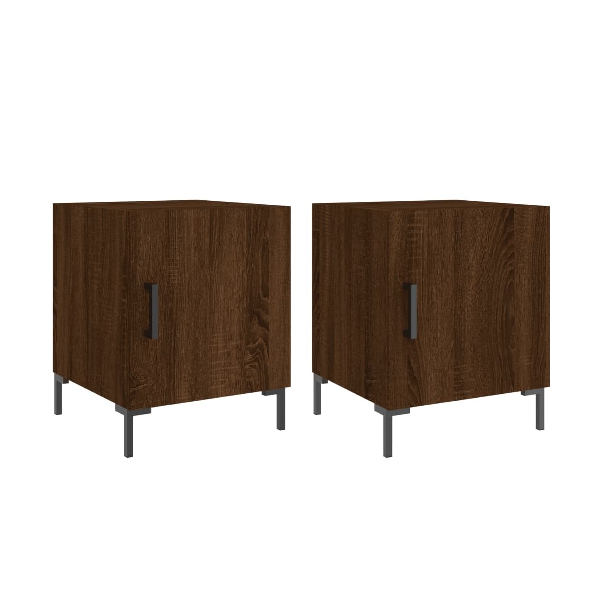 ¡Da un toque de encanto moderno a la casa con estas mesitas de noche! Material duradero: La madera de ingeniería tiene una calidad excepcional, con una superficie lisa y también cuenta con fuerza, estabilidad y resistencia a la humedad. Amplio espacio de almacenaje: La mesita de noche tiene un compartimento, por lo que ofrece un amplio espacio de almacenaje para mantener al alcance libros, aparatos multimedia y otros objetos.Función expositora: También puedes colocar tus fotos favoritas, adornos o flores en la superficie de esta mesita auxiliar para alegrarte la vida. Patas de metal: Las patas metálicas añaden un estilo tranquilo a la casa a la vez que garantizan la estabilidad.Práctica puerta: Mantén tus cosas libres de polvo ocultándolas detrás de la puerta. Advertencia: Para evitar que vuelque, este producto debe usarse con el dispositivo de fijación a la pared incluido.