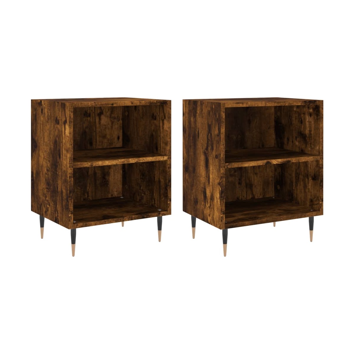 Estas mesitas de noche, con un diseño elegante, son un aporte atemporal para la decoración de tu hogar. Material duradero: La madera de ingeniería es de una buena calidad con superficie lisa y también se caracteriza por su fuerza, estabilidad y resistencia a la humedad. Hecha de madera de ingeniería, la mesita de noche es fácil de limpiar con un paño húmedo.Amplio espacio de almacenaje: Con 2 compartimentos, la mesita de noche ofrece un práctico espacio de almacenaje para mantener bien organizados y al alcance revistas, libros, mandos a distancia y otros artículos pequeños.Superficie estable: La estable superficie de la mesita de noche se puede usar para colocar objetos decorativos como marcos de fotos y plantas. Advertencia:Para evitar que vuelque, este producto debe usarse con el dispositivo de fijación a la pared incluido.
