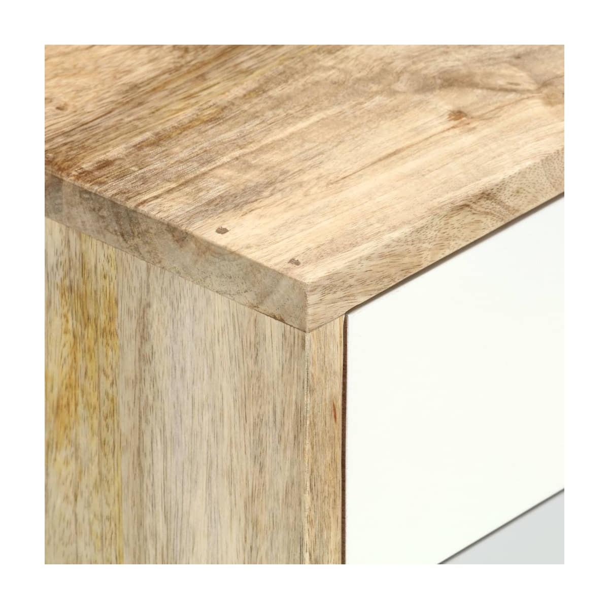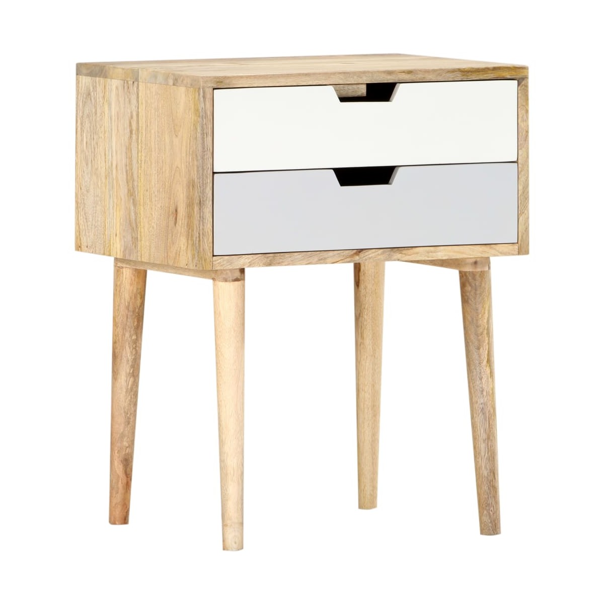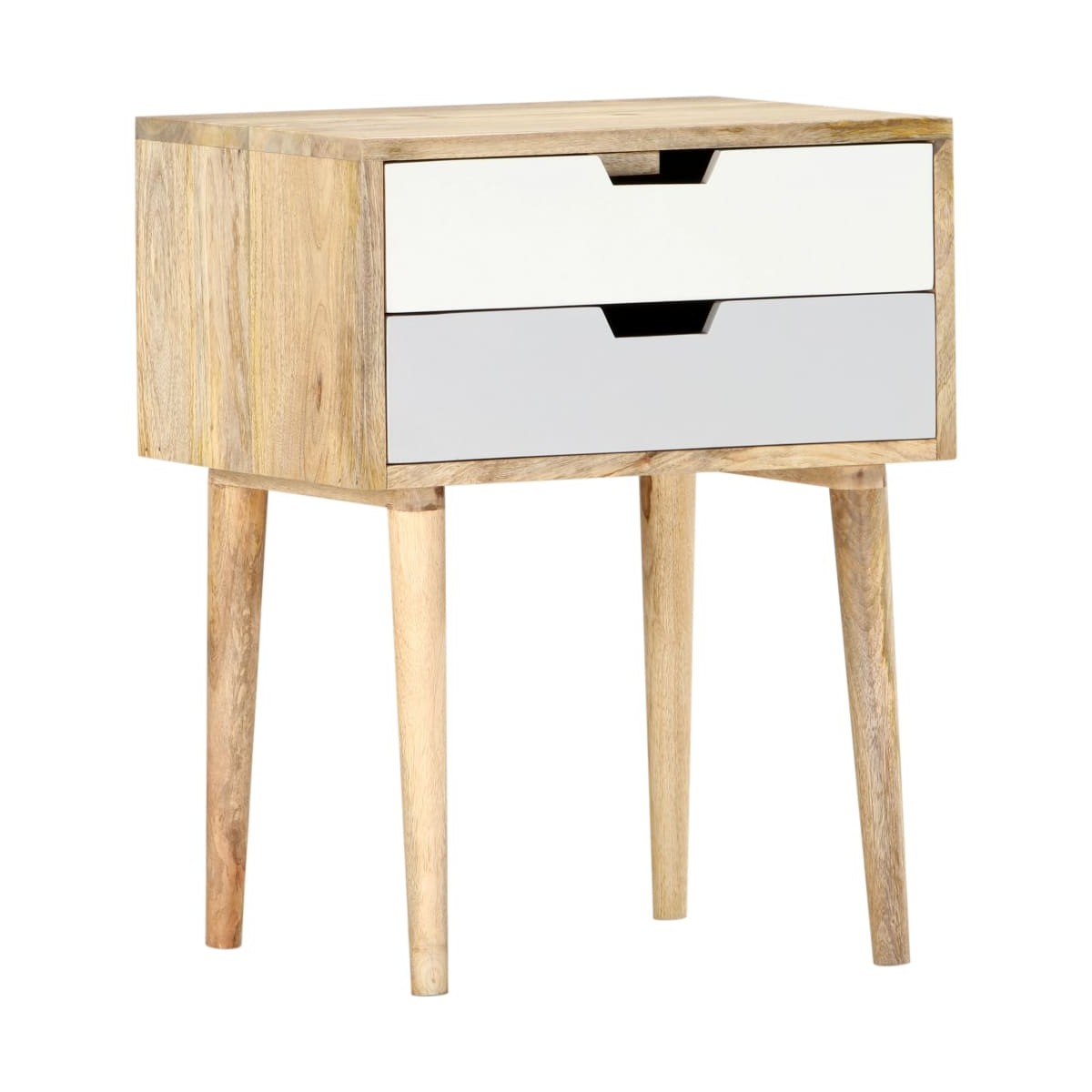 Esta mesita de noche de madera de encanto rústico será un aporte decorativo para tu dormitorio. La mesita de noche está hecha a mano con madera de mango, que es maciza, estable, duradera y bonita. Cada paso del proceso se lleva a cabo con el más excepcional de los cuidado, tanto el pulido como la pintura o el lacado. La artesanía y las bonitas vetas de la madera hacen que cada mueble sea único y ligeramente diferente al resto. Posee una superficie robusta y dos cajones que proporcionan espacio suficiente para que guardes diversos objetos como libros, gafas y mandos a distancia, para tenerlos organizados y al alcance. La mesita de noche es fácil de montar. Nota importante: Los colores varían de una pieza a otra, por lo que cada una de nuestros armarios es único; la entrega es aleatoria.