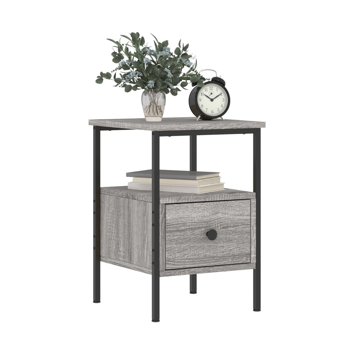 Con un diseño sencillo y compacto, estas mesitas de noche encajan fácilmente en el dormitorio o el salón y añaden un encanto atemporal a la casa. Material duradero: La madera de ingeniería tiene una calidad excepcional, con una superficie lisa y también cuenta con fuerza, estabilidad y resistencia a la humedad. Estructura robusta: La estructura de hierro garantiza su solidez y estabilidad.Amplio espacio de almacenaje: La mesita de noche ofrece un amplio espacio de almacenaje para mantener tus artículos de uso diario bien organizados y al alcance.Función expositora: También puedes colocar tus fotos favoritas, adornos o flores en la superficie de esta mesita auxiliar para alegrarte la vida.Patas ajustables: Cuatro patas ajustables con almohadillas de plástico mantienen el armario auxiliar equilibrado en suelo irregular y aumentan la estabilidad. Advertencia:Para evitar que vuelque, este producto debe usarse con el dispositivo de fijación a la pared incluido.