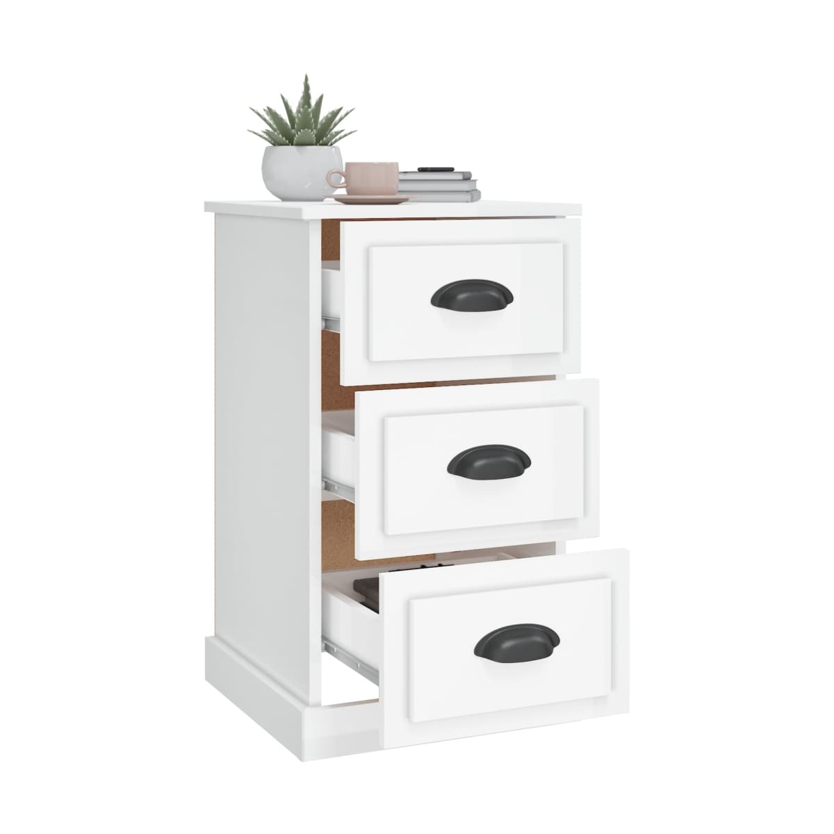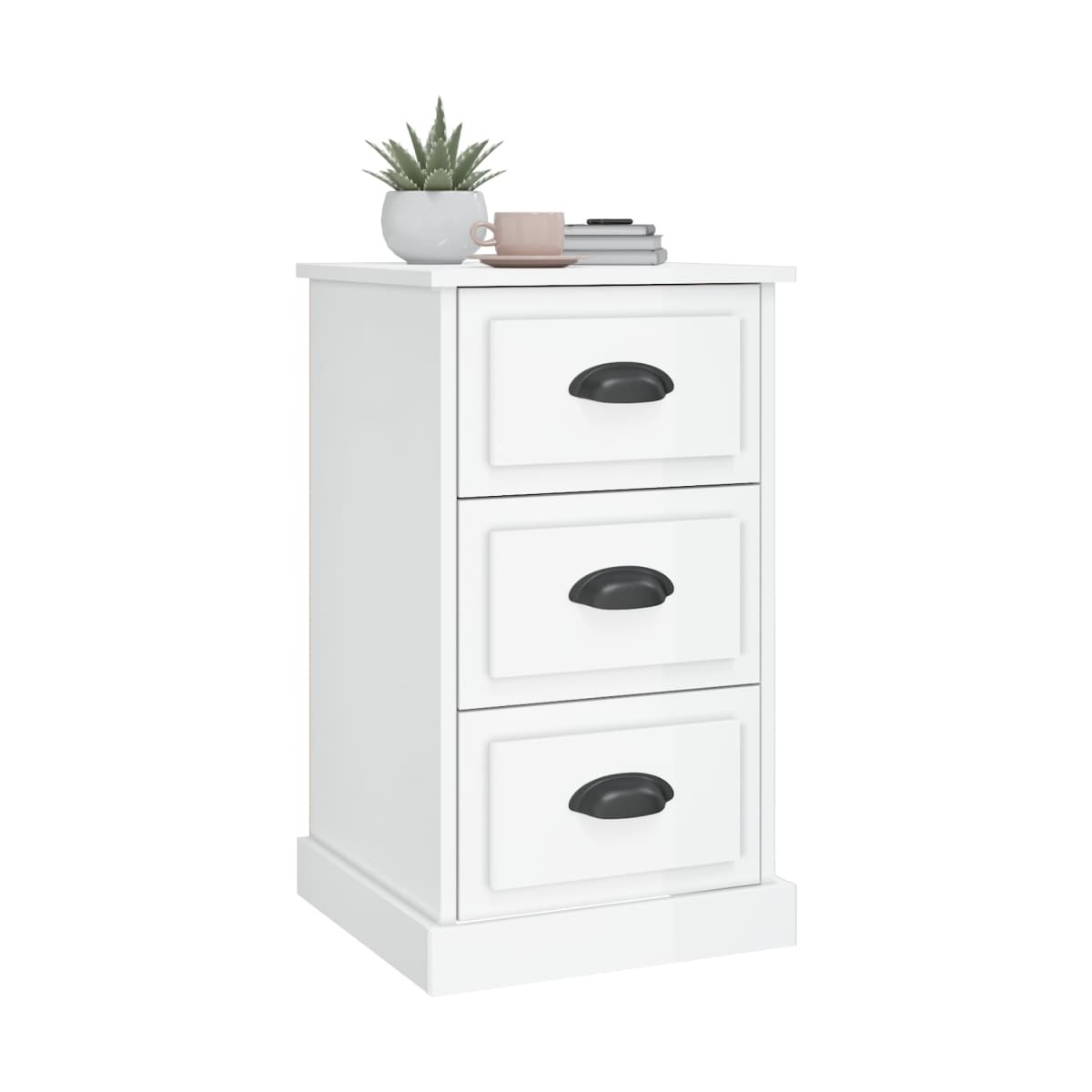 Esta moderna mesita de noche es un aporte perfecto para la casa y crea además una impresión duradera. Material duradero: La madera contrachapada tiene una calidad excepcional, con una superficie lisa, y también cuenta con fuerza, estabilidad y resistencia a la humedad.Amplio espacio de almacenaje: Con una superficie lisa y 3 cajones, la mesita de noche te ayuda a organizar los libros, los accesorios de la TV, las gafas y las tazas para tenerlos a mano.Diseño multiusos: Este mueble es ideal como mesita de noche al lado de la cama, como mesita al lado del sofá del salón o como mueble adicional para el estudio. Advertencia:Para evitar que vuelque, este producto debe usarse con el dispositivo de fijación a la pared incluido.