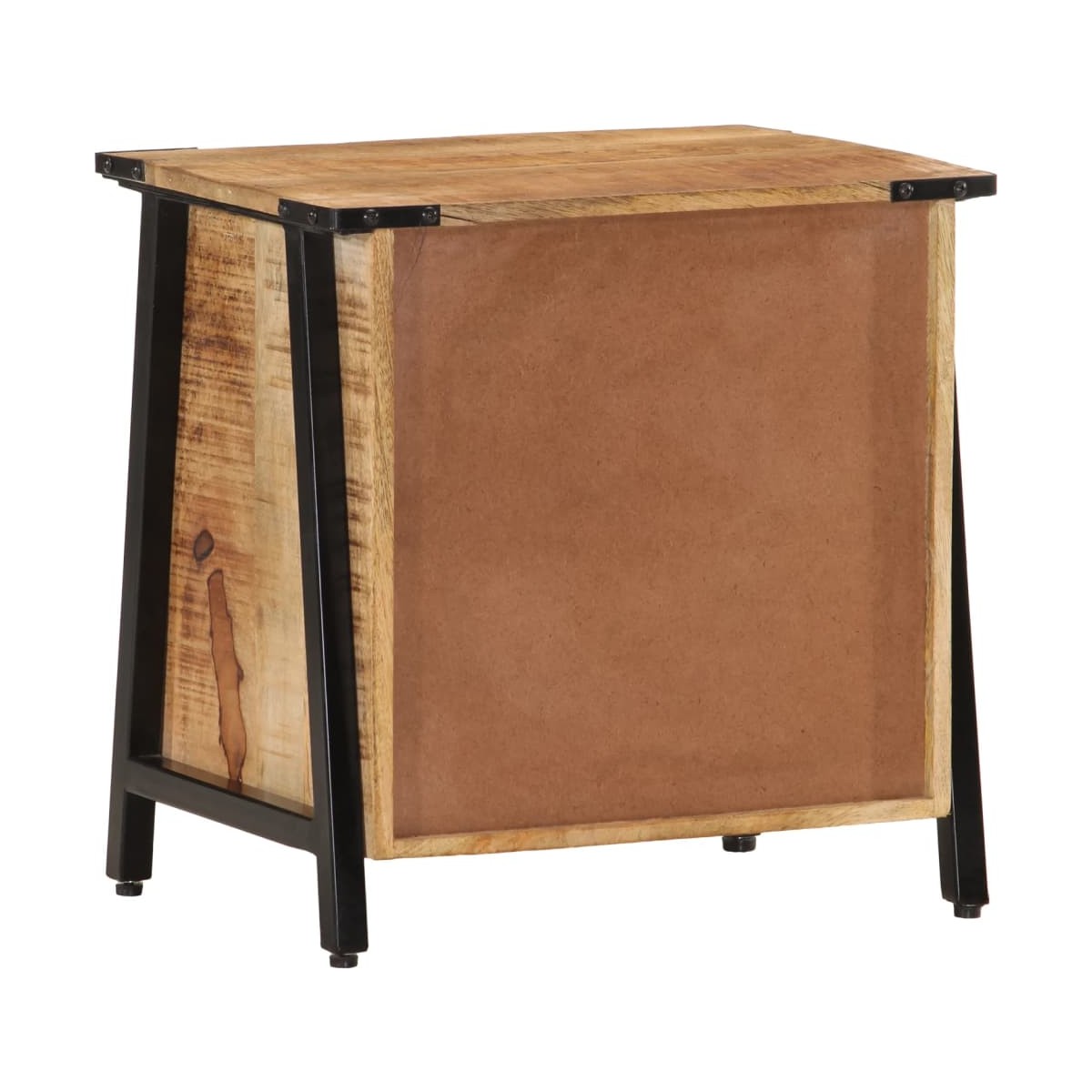 Con un diseño elegante, esta mesita de noche se integrará fácilmente en tu dormitorio o salón, aportando un encanto atemporal a tu decoración. Material duradero: La madera maciza de mango es una madera dura, tropical y resistente, que sirve para fabricar muebles robustos. Las bonitas vetas de la madera hacen que cada mueble sea ligeramente diferente al resto. Hecho de madera maciza de mango, el mueble es robusto y estable.Estructura de hierro: La estructura de hierro añade un estilo tranquilo a tu hogar además de garantizar la estabilidad.Amplio espacio de almacenaje: Este mueble ofrece un práctico espacio de almacenaje para mantener revistas, libros, mandos a distancia y otros objetos pequeños bien organizados y al alcance.Diversidad de usos: La extensión de 1 cm en la parte superior brinda espacio adicional para organizar diversos objetos, como teléfonos móviles, libros y lámparas, etc. Información útil:Cada artículo es único, con variaciones de color y veta. La entrega es aleatoria garantizando la exclusividad y la individualidad del producto.