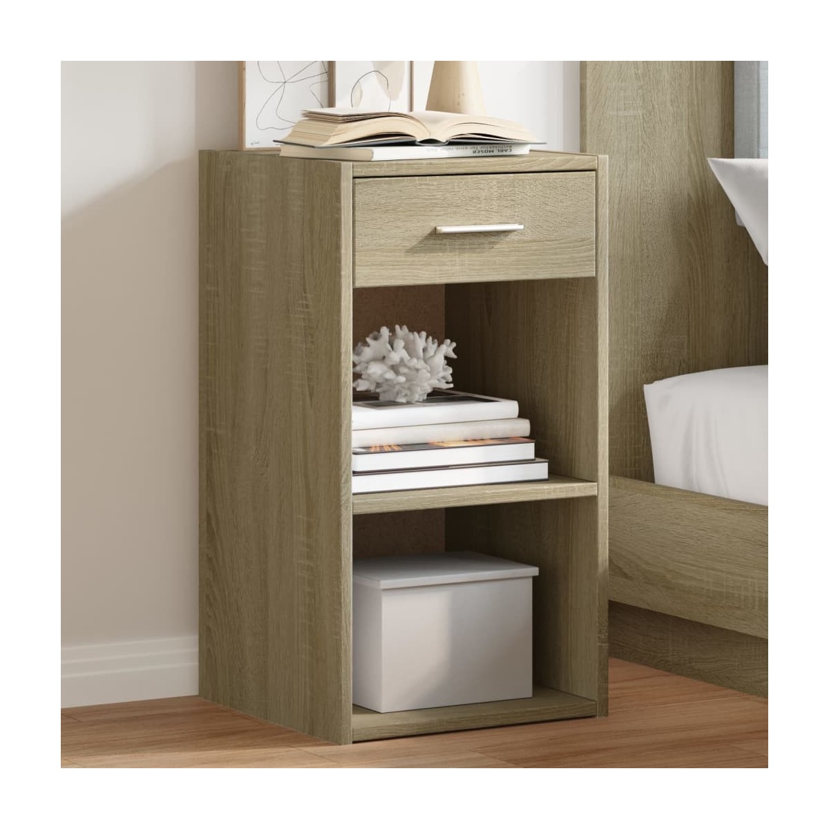 Estas mesitas de noche, con un diseño elegante, son un aporte atemporal para la decoración de tu hogar. Material duradero: La madera de ingeniería tiene una calidad excepcional, con una superficie lisa y también cuenta con fuerza, estabilidad y resistencia a la humedad.Amplio espacio de almacenaje: Equipada con 1 cajón y 2 compartimentos abiertos, la mesita de noche ofrece un amplio espacio de almacenamiento para mantener las cosas del día a día bien organizadas y al alcance.Diseño multiusos: Este mueble es ideal como mesita de noche al lado de la cama, como mesita al lado del sofá del salón o como mueble adicional para el estudio.Función expositora: También puedes colocar tus fotos favoritas, adornos o flores en la superficie de esta mesita de noche para alegrarte la vida. Advertencia:Para evitar que vuelque, este producto debe usarse con el dispositivo de fijación a la pared suministrado.