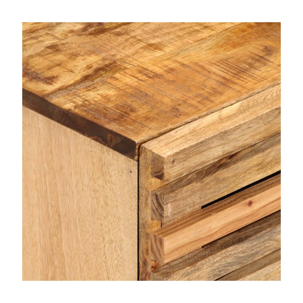 Esta mesita de noche de madera de diseño industrial será a la vez un aporte decorativo y práctico para la decoración de tu hogar. Madera maciza de mango: La madera maciza de mango es una madera dura, tropical y resistente, que sirve para hacer muebles robustos. Las bonitas vetas de la madera hacen que cada mueble sea ligeramente diferente al resto.Amplio espacio de almacenamiento: La mesita de noche cuenta con 2 cajones y proporciona un amplio espacio de almacenamiento para que pueda almacenar y exhibir sus libros, revistas y artículos decorativos, al tiempo que mejora su espacio vital.Patas estables y duraderas: Este armario está sostenido por patas resistentes, lo que garantiza estabilidad, seguridad y firmeza. Información útil:Cada artículo es único, con variaciones de color y veta. La entrega es aleatoria garantizando la exclusividad y la individualidad del producto.