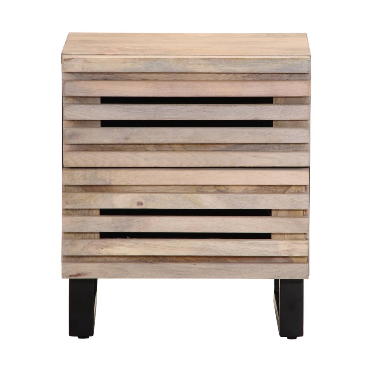 Esta mesita de noche de madera de diseño industrial será a la vez un aporte decorativo y práctico para la decoración de tu hogar. Madera maciza de mango: La madera maciza de mango es una madera dura, tropical y resistente, que sirve para hacer muebles robustos. Las bonitas vetas de la madera hacen que cada mueble sea ligeramente diferente al resto.Amplio espacio de almacenamiento: La mesita de noche cuenta con 2 cajones y proporciona un amplio espacio de almacenamiento para que pueda almacenar y exhibir sus libros, revistas y artículos decorativos, al tiempo que mejora su espacio vital.Patas estables y duraderas: Este armario está sostenido por patas resistentes, lo que garantiza estabilidad, seguridad y firmeza. Información útil:Cada artículo es único, con variaciones de color y veta. La entrega es aleatoria garantizando la exclusividad y la individualidad del producto.