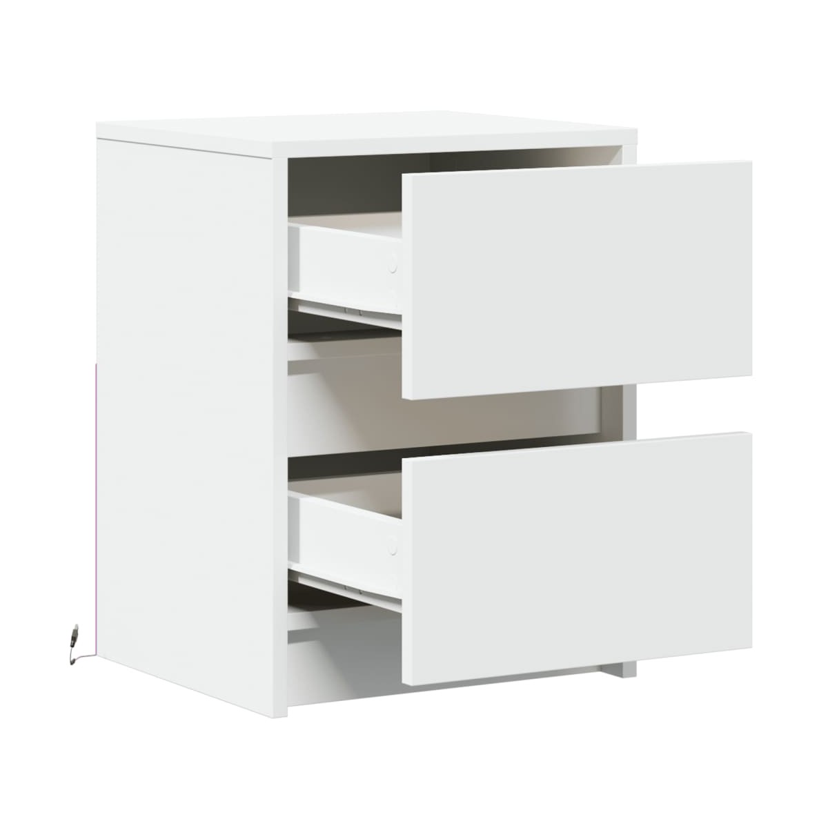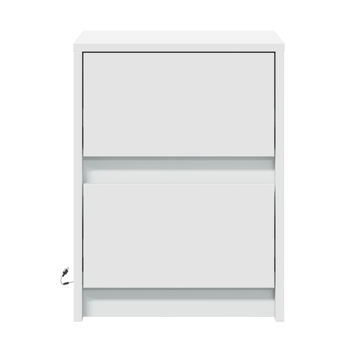 Con un diseño elegante, estas mesitas de noche encajan fácilmente en tu dormitorio o sala de estar y agregan un encanto atemporal a tu decoración. Material duradero:La madera de ingeniería tiene una calidad excepcional, con una superficie lisa y también con fuerza, estabilidad y resistencia a la humedad.Amplio espacio de almacenamiento: La mesita de noche con cajón ofrece un amplio espacio de almacenamiento para mantener tus diversos artículos de uso diario bien organizados y al alcance.Luces LED RGB para un ambiente agradable: Esta mesa auxiliar cuenta con luces LED que se pueden ajustar fácilmente para crear un espectáculo de luces personalizado. Puedes personalizar los modos, los colores y el brillo para mejorar el ambiente de tu hogar.Fácil de mantener: Gracias a su superficie lisa, el armario auxiliar es fácil de limpiar con un paño húmedo y requiere menos mantenimiento. Advertencia:Para evitar que vuelque, este producto debe usarse con el dispositivo de fijación a la pared suministrado.Información útil:El producto tiene un conector USB que necesita una fuente de alimentación USB certificada de 5 V (no incluida).
