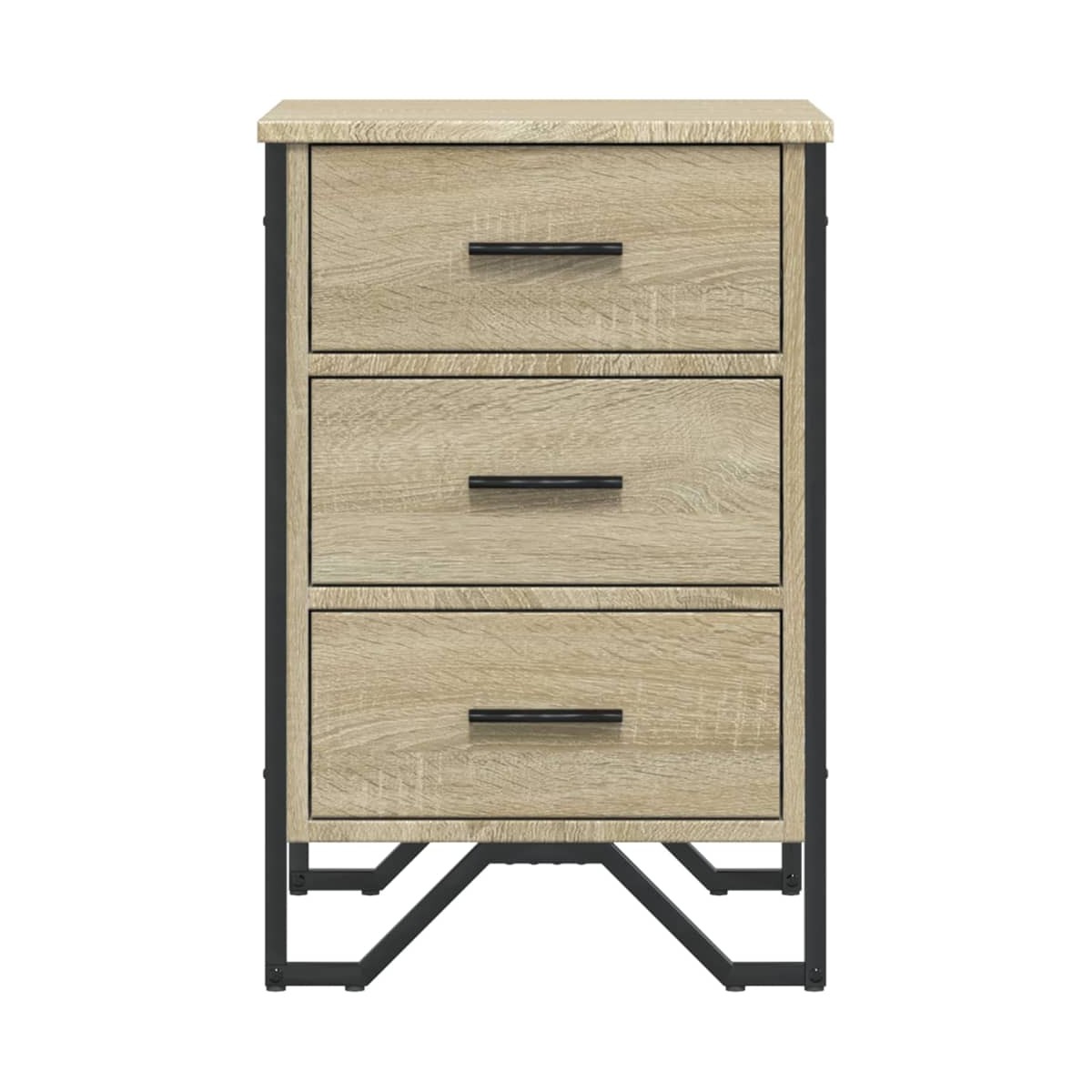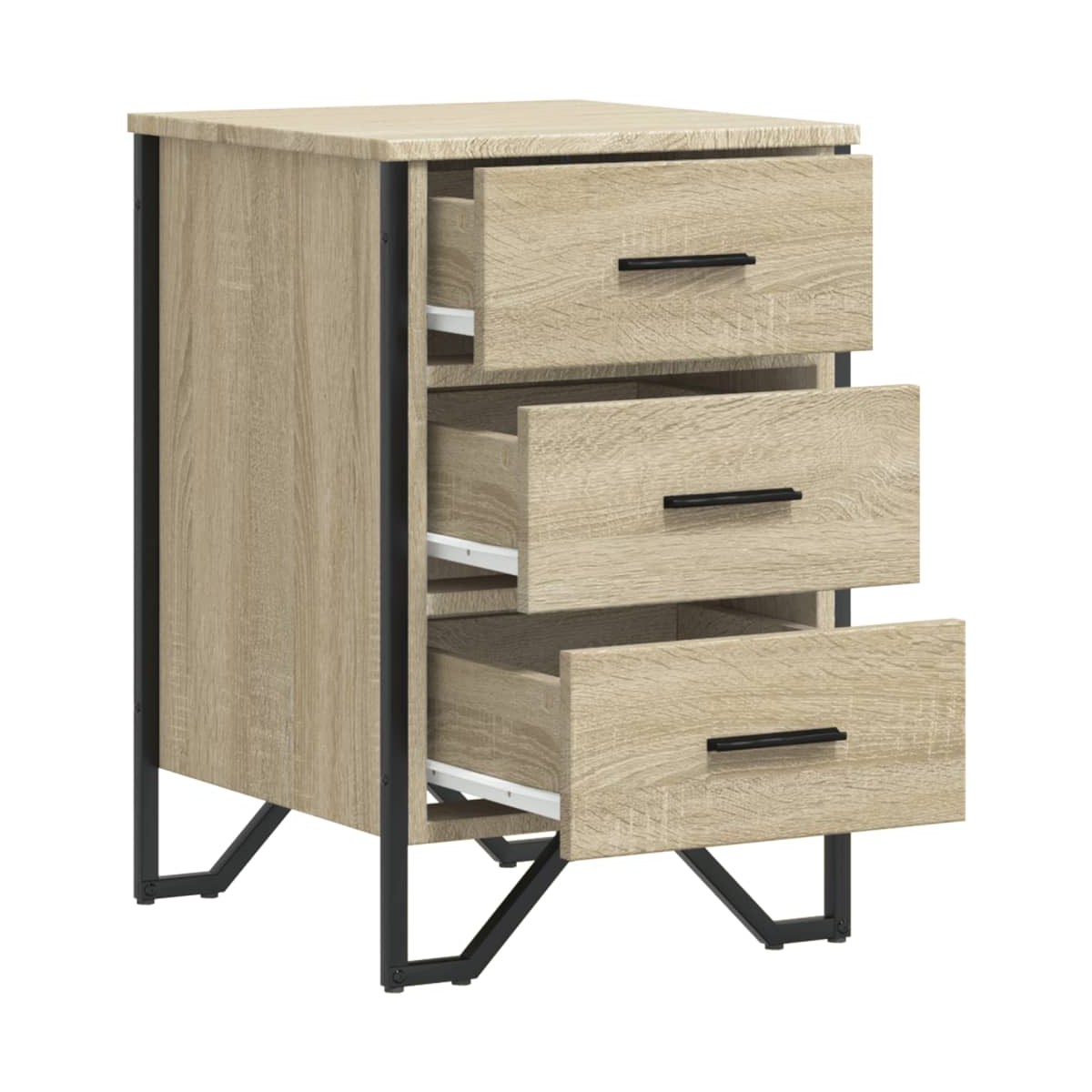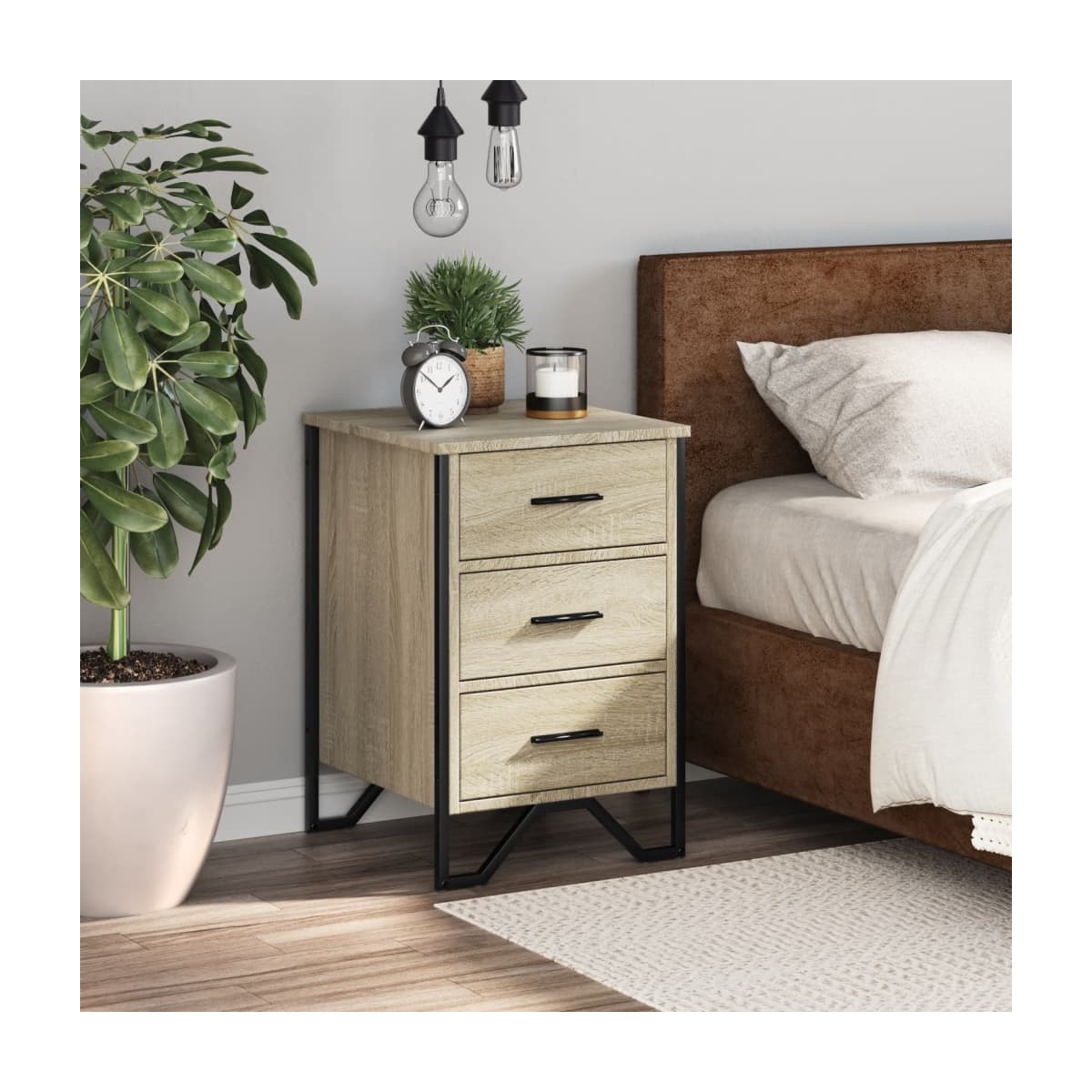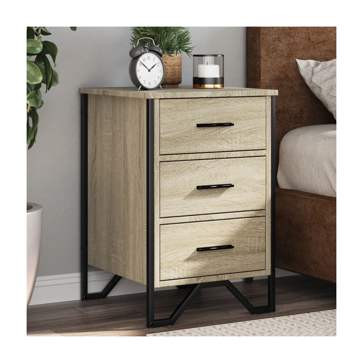 Esta moderna mesita de noche, con un diseño elegante y clásico, está destinada a mejorar el interior de la casa. Material duradero:La madera de ingeniería tiene una calidad excepcional, con una superficie lisa y también con fuerza, estabilidad y resistencia a la humedad.Amplio espacio de almacenamiento: Esta mesita de noche tiene tres cajones que proporcionan espacio de almacenamiento para mantener al alcance tus revistas, libros, mandos a distancia y otros objetos pequeños.Superficie resistente: La robusta superficie de la mesilla de noche es ideal para colocar objetos decorativos, marcos de fotos o plantas.Patas de metal: Las patas de metal le dan un estilo moderno y tranquilo a la casa mientras garantizan su estabilidad.