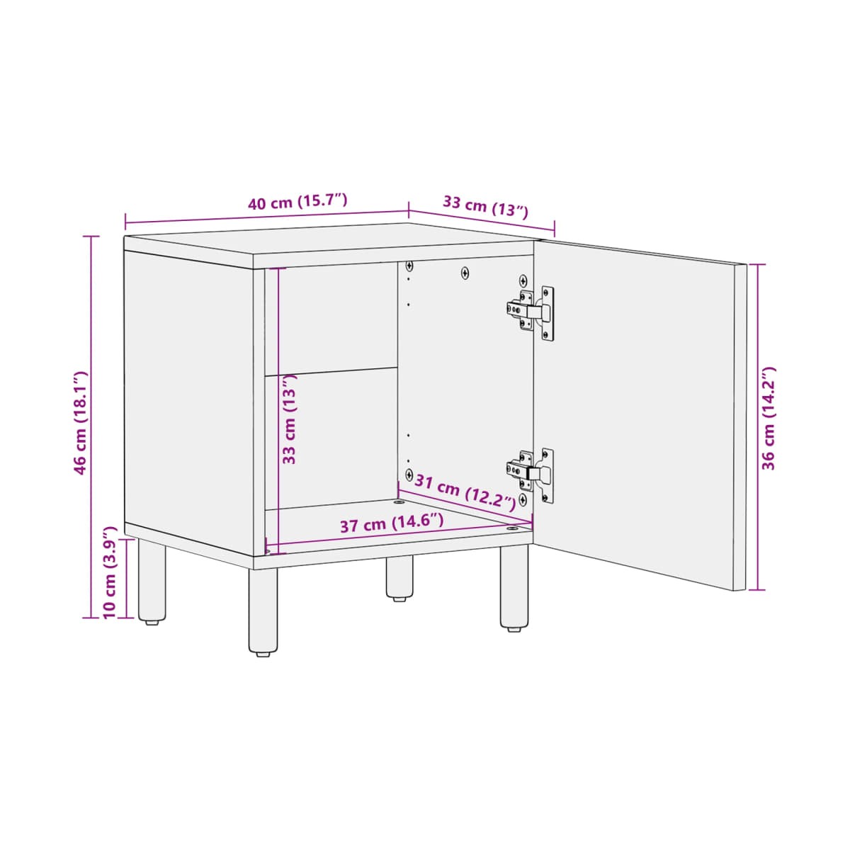 Esta mesita de noche de madera será a la vez un aporte decorativo y práctico para la decoración de tu hogar. Material robusto y estable: La madera maciza de mango es una madera dura, tropical y resistente, que sirve para hacer muebles robustos. Las bonitas vetas de la madera hacen que cada mueble sea ligeramente diferente al resto.Amplio espacio de almacenamiento: La mesita de noche cuenta con 1 cajón y 1 puerta para que puedas almacenar y exhibir tus libros, revistas y artículos decorativos, al tiempo que mejora tu hogar.Patas estables y duraderas: Este armario está sostenido por patas resistentes, lo que garantiza estabilidad, seguridad y firmeza.