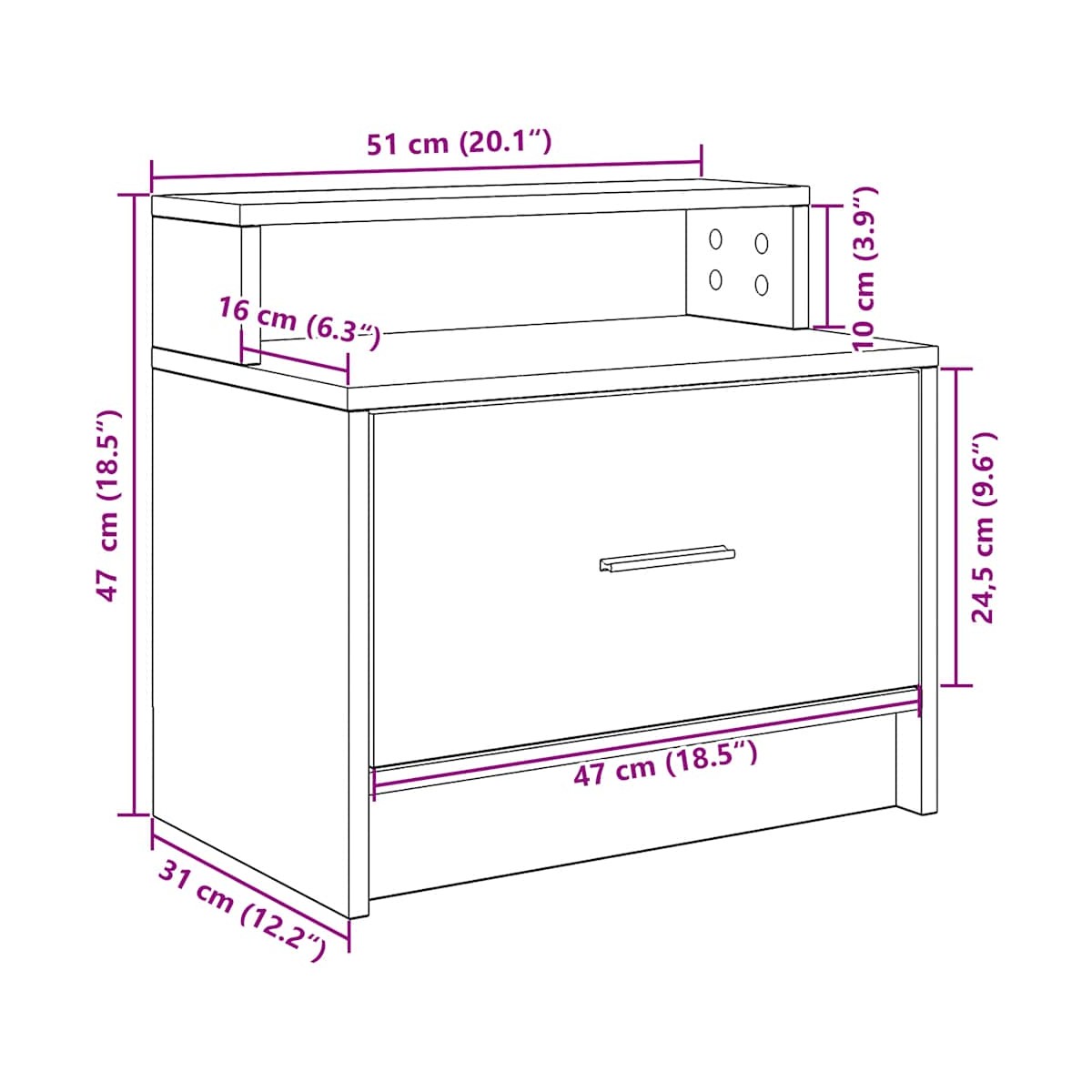 Ya sea que desees buscar tu libro favorito o guardar tus elementos esenciales para la noche, estas mesitas de noche combinan estilo y practicidad, lo que las convierte en una excelente opción para tu mesilla de noche. Material estable y duradero: La madera de ingeniería es un material duradero y estable con una superficie lisa que es resistente a la humedad, la deformación y la rotura, lo que la convierte en una opción fiable para una variedad de proyectos.Amplio espacio de almacenamiento: el gabinete ofrece un amplio espacio de almacenamiento con un cajón y un compartimento de almacenamiento abierto, lo que le permite organizar y almacenar artículos como libros, revistas o pertenencias personales, manteniendo su dormitorio ordenado.Uso práctico: Con una altura ideal para un fácil acceso desde la cama, esta mesa está diseñada para brindar funcionalidad y comodidad. Los cajones cuentan con manijas prácticas, lo que garantiza que se abran de manera suave y sin esfuerzo.Fácil de mantener: Gracias a su superficie lisa, el armario es fácil de limpiar con un paño húmedo y requiere menos mantenimiento. Advertencia:Para evitar que vuelque, este producto debe usarse con el dispositivo de fijación a la pared suministrado.