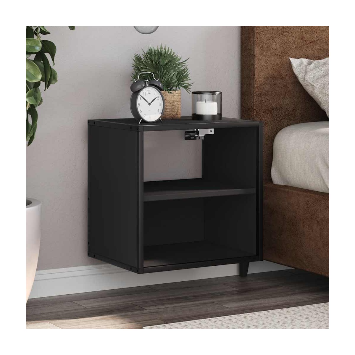 Estas mesitas de noche de montaje en la pared son la solución perfecta para tu hogar, con el fin de maximizar el espacio y mantener limpio el suelo. Material estable y duradero: La madera de ingeniería es un material duradero y estable con una superficie lisa que es resistente a la humedad, la deformación y la rotura, lo que la convierte en una opción fiable para una variedad de proyectos.Estructura estable y duradera: El material metálico es resistente, estable y duradero, lo que lo convierte en la opción ideal para una amplia gama de aplicaciones, desde la fabricación de muebles hasta la construcción.Amplio espacio de almacenamiento: La mesilla de noche ofrece un amplio espacio de almacenamiento para revistas, libros, gafas y otros objetos esenciales para la hora de dormir, manteniéndolos organizados y al alcance de la mano.Diseño de pared: La mesita de noche flotante se puede montar en la pared para agregar espacio de almacenamiento adicional. De esa forma, puedes liberar espacio en el piso y tener tu ambiente ordenado y limpio.Superficie resistente: La robusta parte superior de la mesilla de noche es perfecta para colocar lámparas de mesa, despertadores, libros, marcos de fotos, pequeñas plantas en macetas, adornos u otros objetos esenciales. Información útil:Los tornillos y los tacos para el interior de la pared no están incluidos. Recomendamos encontrar y utilizar tornillos y tacos adecuados específicamente para las paredes. Si no estás seguro, puedes consultar con un profesional. Lee y sigue cada paso de las instrucciones.