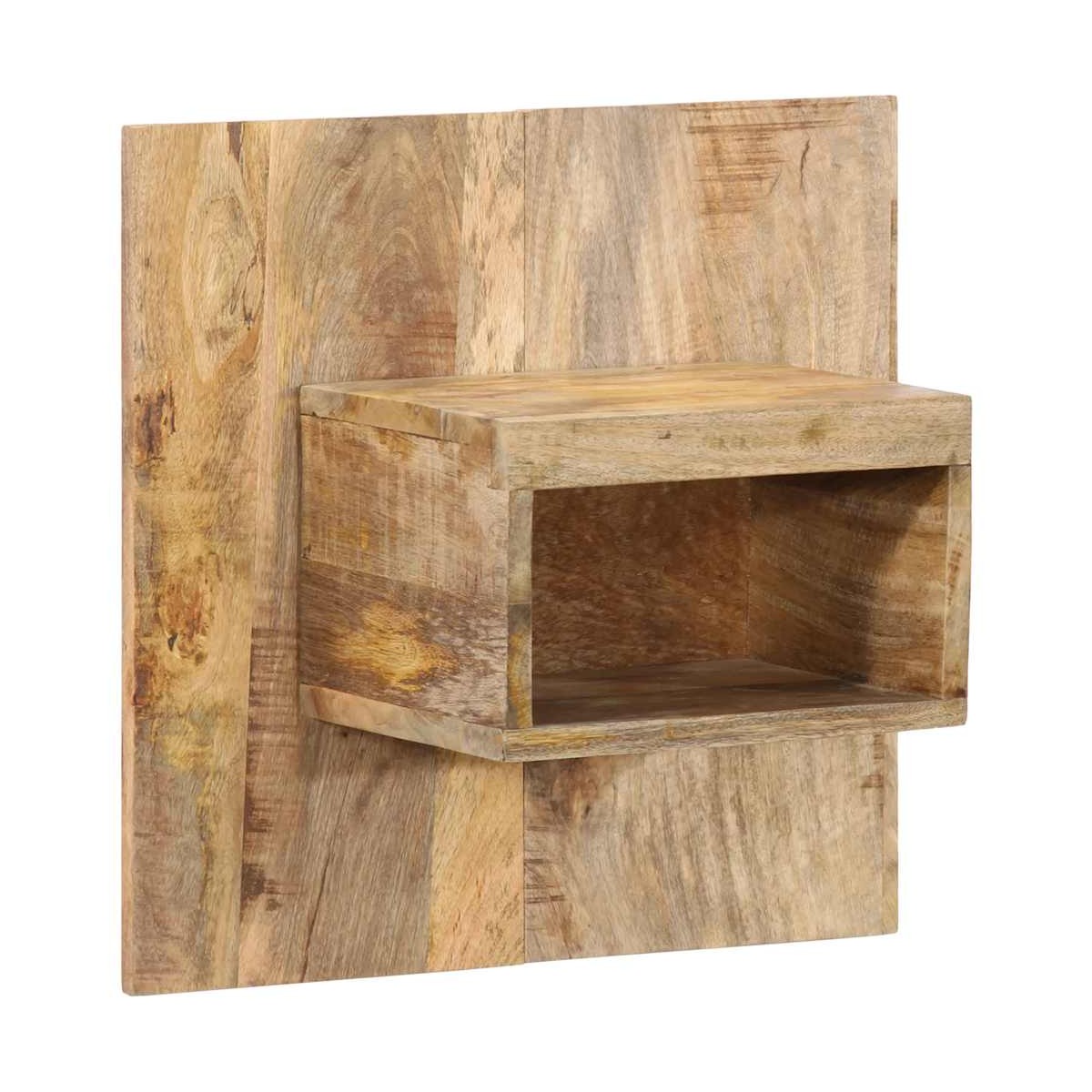 ¡Mejora tu dormitorio con estas mesitas de noche de pared! ¡Se complementan fácilmente con cualquier estilo de mobiliario de tu hogar! Material robusto y estable: La madera maciza de mango, una madera dura tropical robusta, es muy apreciada para la fabricación de muebles por su excepcional durabilidad y resistencia. Las bonitas vetas de la madera hacen que cada mueble sea ligeramente diferente al resto.Amplio espacio de almacenamiento: la mesita de noche ofrece un amplio espacio de almacenamiento para revistas, libros, vasos y otros elementos esenciales para la hora de dormir, manteniéndolos organizados y al alcance.Diseño de pared: La mesita de noche flotante se puede montar en la pared para agregar espacio de almacenamiento adicional. De esa forma, puedes liberar espacio en el piso y tener tu ambiente ordenado y limpio. Información útil:Cada artículo es único, con variaciones de color y veta. La entrega es aleatoria garantizando la exclusividad y la individualidad del producto.