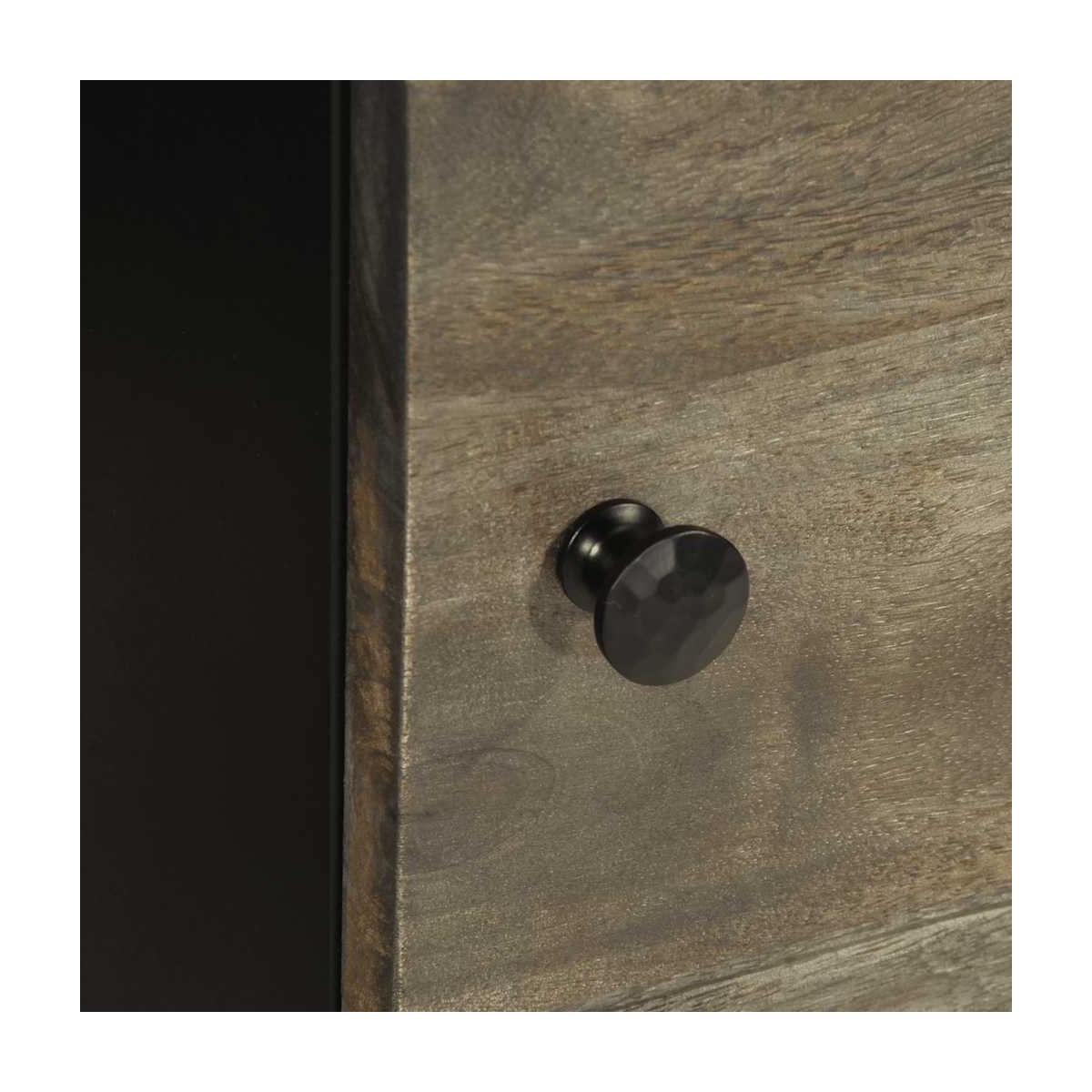 - Material: Mango acabado gris claro con frente tallado, madera de ingeniería, metal.