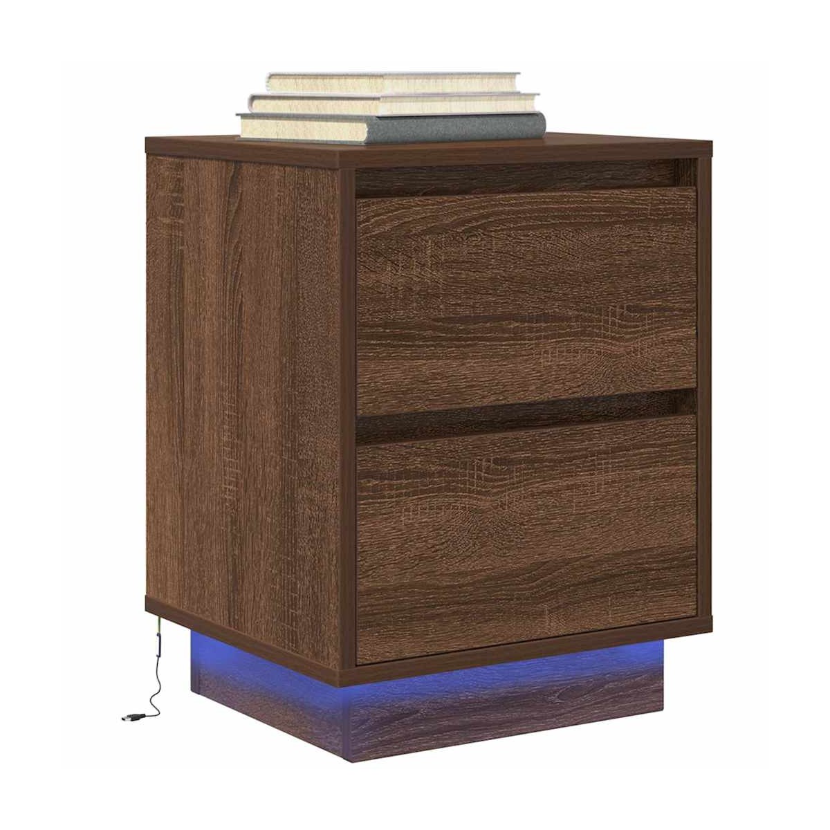 ¡Mejora tu dormitorio con esta mesita de noche con luces LED! ¡Combina fácilmente con cualquier estilo de mobiliario de tu hogar! Material estable y duradero: La madera de ingeniería es un material duradero y estable con una superficie lisa que es resistente a la humedad, la deformación y la rotura, lo que la convierte en una opción fiable para una variedad de proyectos.Luces LED RGB para un ambiente agradable: las luces LED se pueden ajustar fácilmente para crear un espectáculo de luces personalizado. Puedes personalizar los modos, los colores y el brillo para mejorar el ambiente de tu espacio interior.Amplio espacio de almacenamiento: La mesilla de noche ofrece un amplio espacio de almacenamiento para revistas, libros, gafas y otros objetos esenciales para la hora de dormir, manteniéndolos organizados y al alcance de la mano.Superficie resistente: La robusta parte superior de la mesilla de noche es perfecta para colocar lámparas de mesa, despertadores, libros, marcos de fotos, pequeñas plantas en macetas, adornos u otros objetos esenciales.Fácil de mantener: Gracias a su superficie lisa, la mesita de noche es fácil de limpiar con un paño húmedo y requiere menos mantenimiento. Advertencia:Para evitar que vuelque, este producto debe usarse con el dispositivo de fijación a la pared suministrado. Información útil:El producto tiene un conector USB que necesita una fuente de alimentación USB certificada de 5 V (no incluida).