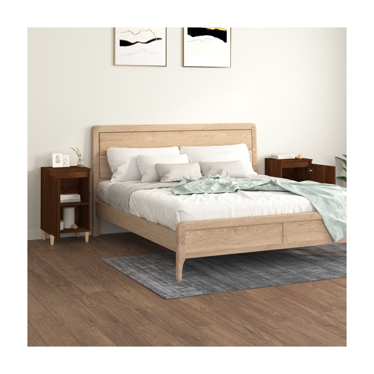 Estas modernas mesitas de noche, con un diseño elegante y clásico, están destinadas a mejorar el interior de la casa. Material duradero: La madera contrachapada tiene una calidad excepcional, con una superficie lisa y también cuenta con fuerza, estabilidad y resistencia a la humedad.Amplio espacio de almacenamiento: La mesita de noche tiene 2 compartimentos con una puerta, lo que brinda un amplio espacio para mantener tus revistas, libros, mandos a distancia y otros artículos pequeños bien organizados y al alcance.Patas de madera: Las patas de madera le dan al armario un aspecto natural y agradable a la vez que garantizan la estabilidad. Combina bien con cualquier decoración de interior.Tablero resistente: El tablero resistente de la mesa auxiliar es ideal para exhibir objetos decorativos, marcos de fotos y plantas en macetas.Superficie fácil de limpiar: El mueble auxiliar es fácil de limpiar con un paño húmedo. Advertencia:Para evitar que vuelque, este producto debe usarse con el dispositivo de fijación a la pared incluido. Información útil:Para facilitar al máximo el montaje, cada producto se entrega con un manual.