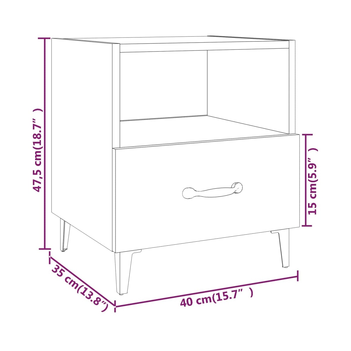 - Dimensiones: 40 x 35 x 47,5 cm (ancho x profundo x alto)