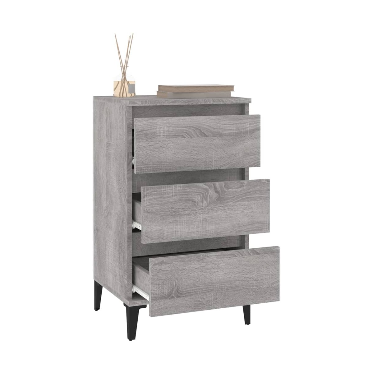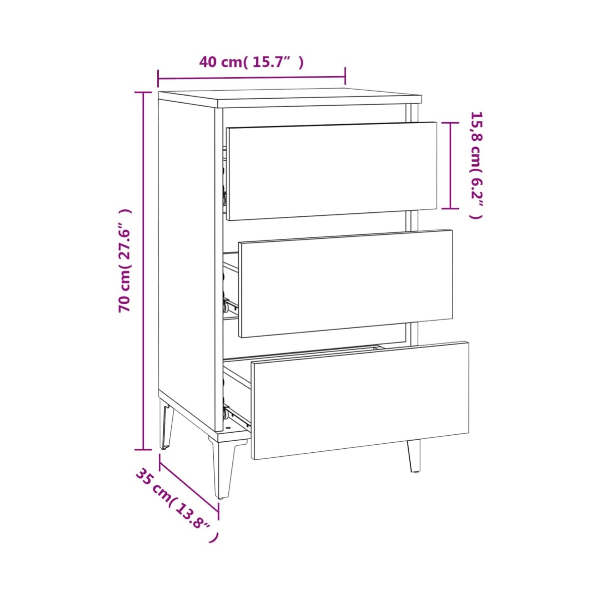 Esta moderna mesita de noche, con un estilo industrial, está diseñada para actualizar la decoración de la casa. Material duradero: La madera contrachapada tiene una calidad excepcional, con una superficie lisa, y también cuenta con fuerza, estabilidad y resistencia a la humedad.Patas de metal: Las patas de metal ofrecen solidez y estabilidad a la mesita auxiliar.Amplio espacio de almacenaje: Con una superficie lisa y 3 cajones, la mesita de noche te ayuda a organizar los libros, los accesorios de la TV, las gafas y las tazas para tenerlos a mano.Diseño multiusos: Este armario de estilo industrial es ideal como mesita de noche al lado de la cama, como mesita al lado del sofá del salón o como mueble adicional para el estudio. Advertencia:Para evitar el vuelco, este producto debe usarse con el dispositivo provisto para fijarlo a la pared. Información útil:Cada producto viene con un manual de montaje en la caja para facilitar el montaje.