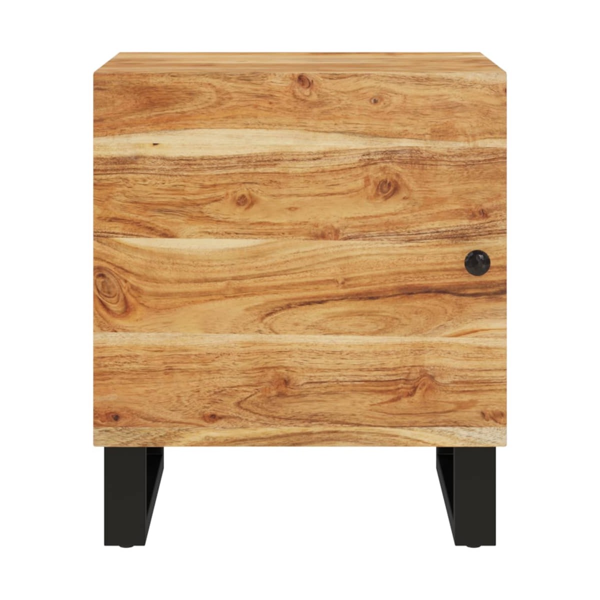 ¡Da un toque de encanto industrial a la casa con esta mesita de noche de madera! Las variaciones de las vetas y los colores confieren a esta mesita de noche un carácter único. Material de primera calidad: La madera maciza de acacia es un bonito material natural. La madera de acacia es una madera dura tropical, densa, robusta y duradera.Amplio almacenamiento: El mueble ofrece un amplio espacio de almacenamiento para guardar revistas, libros, DVD, dispositivos multimedia y otros objetos decorativos bien organizados y al alcance.Superficie resistente: La robusta superficie de la mesilla de noche es ideal para colocar objetos decorativos, marcos de fotos o plantas.Opciones de montaje flexibles: Las puertas del compartimiento se pueden instalar a la izquierda o a la derecha según tu conveniencia y hábitos personales.Base industrial: Las patas de hierro negro añaden un aspecto industrial y agregan estabilidad al mueble auxiliar. Nota:Los colores y las vetas pueden variar de una pieza a otra, por lo que cada mueble es único. La entrega es aleatoria.Cada producto viene con un manual de montaje en la caja para facilitar el montaje.