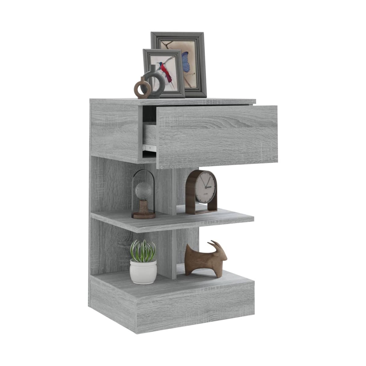 Con un diseño moderno pero práctico, esta mesita de noche definitivamente hace un foco de atención de tu habitación. Material práctico: La madera contrachapada tiene una calidad excepcional, con una superficie lisa y también cuenta con fuerza, estabilidad y resistencia a la humedad. Hecho de madera contrachapada, la mesita de noche es fácil de limpiar.Amplio espacio de almacenaje: El espacio de almacenaje de la mesita de noche permite tener las cosas organizadas.Mueble multiusos: La robusta superficie es ideal para exponer objetos decorativos, marcos de fotos o macetas. También se puede utilizar como mesa auxiliar, mesita, etc. ADVERTENCIA:Para evitar el vuelco, este producto debe usarse con el dispositivo provisto para fijarlo a la pared. Nota:Cada producto viene con un manual de montaje en la caja para facilitar el montaje.
