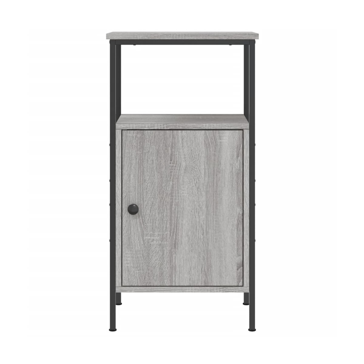Estas mesitas de noche con un diseño industrial son un complemento atemporal para la decoración de la casa. Material duradero: La madera de ingeniería tiene una calidad excepcional, con una superficie lisa y también cuenta con fuerza, estabilidad y resistencia a la humedad.Estructura robusta: La estructura de hierro de la mesita de noche garantiza su solidez y estabilidad.Amplio espacio de almacenaje: La mesita de noche ofrece un amplio espacio de almacenaje para mantener tus artículos de uso diario bien organizados y al alcance.Patas regulables: El mueble auxiliar está equipado con 4 patas regulables que protegen el suelo de los arañazos y lo mantienen estable en suelo irregular.Función expositora: Puedes colocar tus fotos favoritas, adornos o flores en la superficie de esta mesita de noche para alegrarte la vida. Advertencia:Para evitar que vuelque, este producto debe usarse con el dispositivo de fijación a la pared incluido.