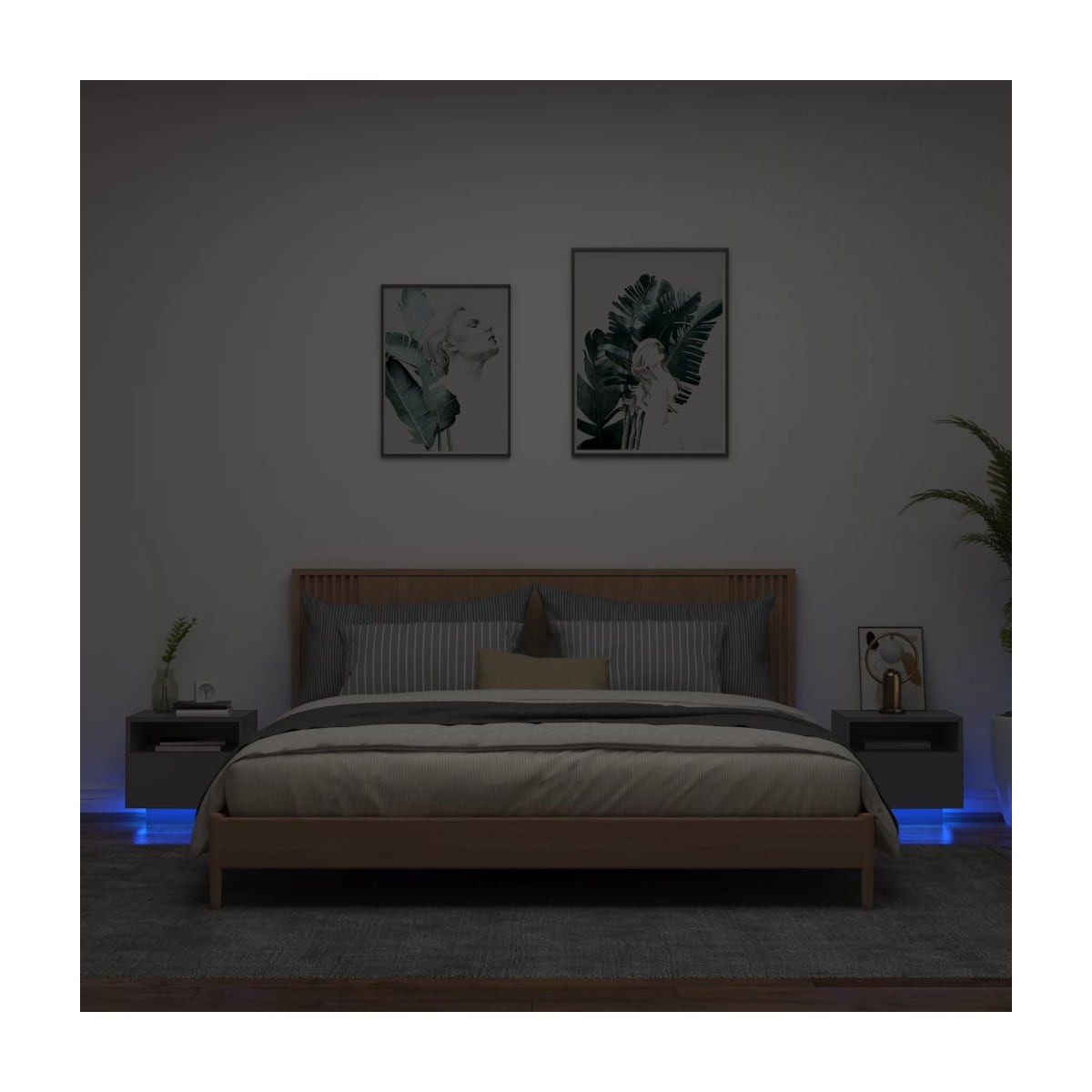 Con un diseño moderno y práctico, este mueble para la TV con luces LED definitivamente se conviertirá en el centro de atención de tu habitación. Material duradero: La madera de ingeniería tiene una calidad excepcional, con una superficie lisa y también cuenta con fuerza, estabilidad y resistencia a la humedad.Luces LED RGB: Estas mesitas de noche cuentan con luces LED RGB, que tienen diferentes menús para cambiar el color de las luces y permitir que el color se ajuste de forma automática.Amplio espacio de almacenaje: Estas mesitas de noche ofrecen un práctico espacio de almacenaje para guardar bien organizados y al alcance revistas, mandos a distancia y otros objetos pequeños.Función de exhibición: Las resistentes partes superiores de estos muebles multimedia son ideales para exhibir objetos decorativos, marcos de fotos o plantas en macetas. Información útil:El producto tiene un conector USB, pero no se incluye la fuente de alimentación USB de 5 V certificada.