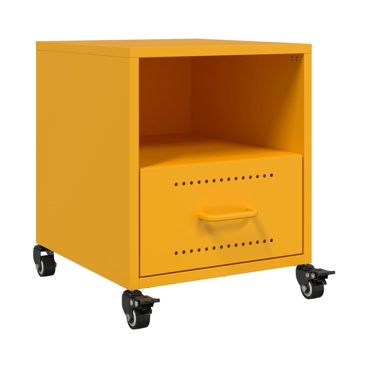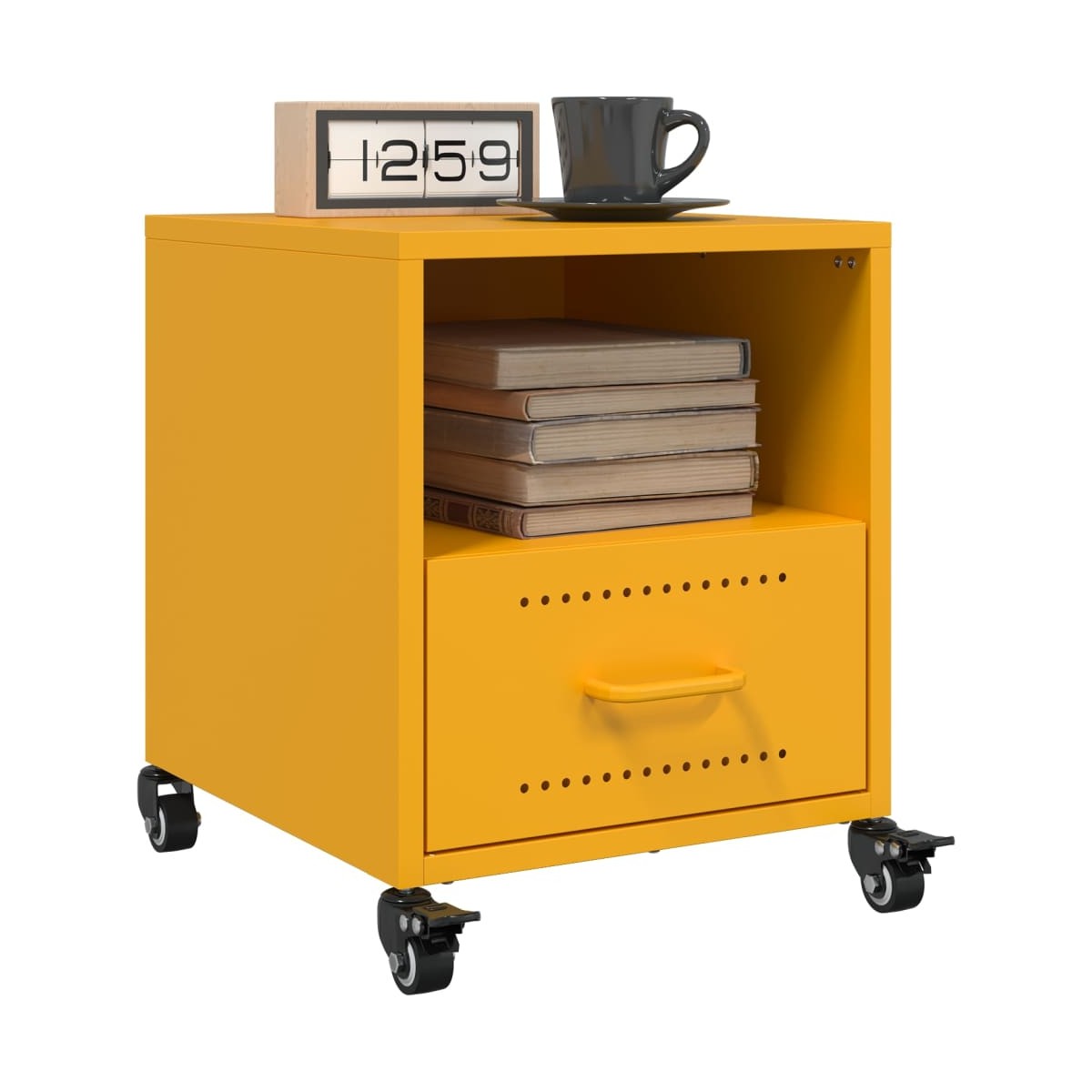 Estas mesitas de noche, con un diseño elegante, son un aporte atemporal para la decoración de tu hogar. Material estable: La estructura de la mesita de noche está hecha de acero laminado en frío. El acero laminado en frío es un tipo de acero con bajo contenido en carbono producido mediante un método de laminación en frío y procesado a temperaturas ambiente cercanas a las normales. El acero laminado en frío tiene una superficie más lisa, mayor resistencia y mayor precisión.Amplio espacio de almacenaje: Este mueble ofrece un práctico espacio de almacenaje para mantener revistas, libros, mandos a distancia y otros objetos pequeños bien organizados y al alcance.Fácil de mantener: La mesa se limpia fácilmente con un paño húmedo y requiere menos mantenimiento.Fácil de mover: Esta mesa auxiliar tiene 4 ruedas, lo que hace que se mueva con flexibilidad y se estacione de manera estable en cualquier momento.Tirador práctico: La mesita de noche viene con un tirador que facilita abrir y cerrar el mueble, además de añadir un toque de belleza.