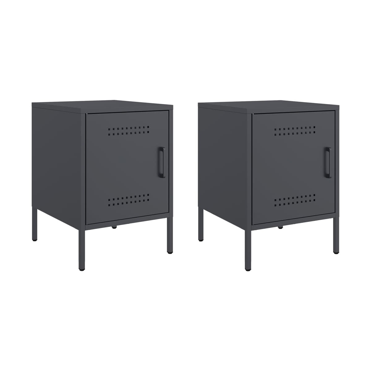 Estas mesitas de noche con un diseño industrial son un complemento atemporal para la decoración de la casa. Estructura robusta y estable: El acero es fuerte, estable y duradero, lo que lo convierte en la opción ideal para una amplia gama de aplicaciones, desde la fabricación de muebles hasta la construcción.Amplio espacio de almacenaje: La mesita de noche ofrece un amplio espacio de almacenamiento para tener a mano y bien organizados tus distintos artículos de uso diario.Fácil de limpiar: La mesita de noche de acero es resistente a la humedad y fácil de limpiar con un paño húmedo.Diseño multiusos: Este mueble es ideal como mesita de noche al lado de la cama, como mesita al lado del sofá del salón o como mueble adicional para el estudio.Función expositora: También puedes colocar tus fotos favoritas, adornos o flores en la superficie de esta mesita de noche para alegrarte la vida. Advertencia:Para evitar que vuelque, este producto debe usarse con el dispositivo de fijación a la pared suministrado.