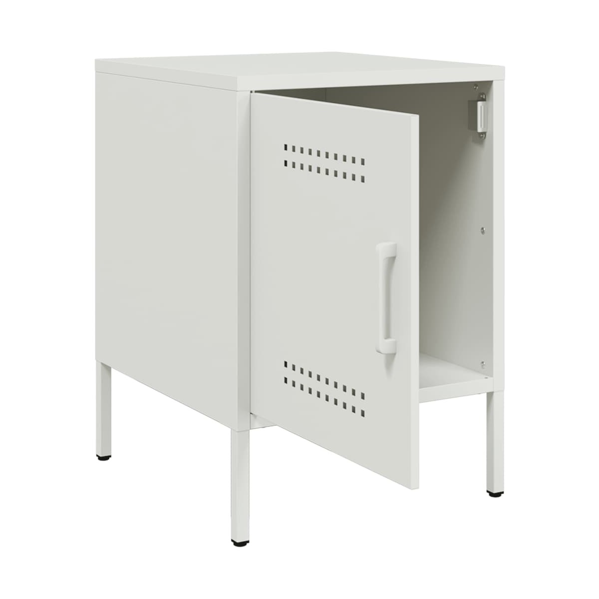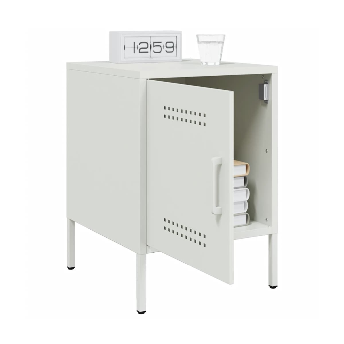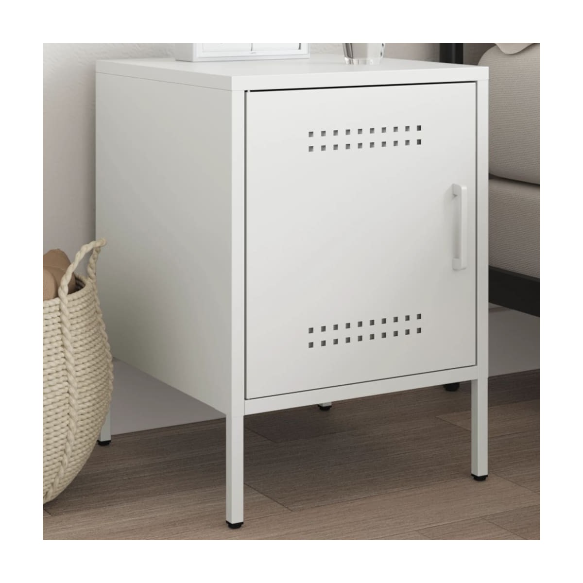 Esta mesita de noche con un diseño industrial es un complemento atemporal para la decoración de la casa. Estructura robusta y estable: El acero es fuerte, estable y duradero, lo que lo convierte en la opción ideal para una amplia gama de aplicaciones, desde la fabricación de muebles hasta la construcción.Amplio espacio de almacenaje: La mesita de noche ofrece un amplio espacio de almacenamiento para tener a mano y bien organizados tus distintos artículos de uso diario.Fácil de limpiar: La mesita de noche de acero es resistente a la humedad y fácil de limpiar con un paño húmedo.Diseño multiusos: Este mueble es ideal como mesita de noche al lado de la cama, como mesita al lado del sofá del salón o como mueble adicional para el estudio.Función expositora: También puedes colocar tus fotos favoritas, adornos o flores en la superficie de esta mesita de noche para alegrarte la vida. Advertencia:Para evitar que vuelque, este producto debe usarse con el dispositivo de fijación a la pared suministrado.