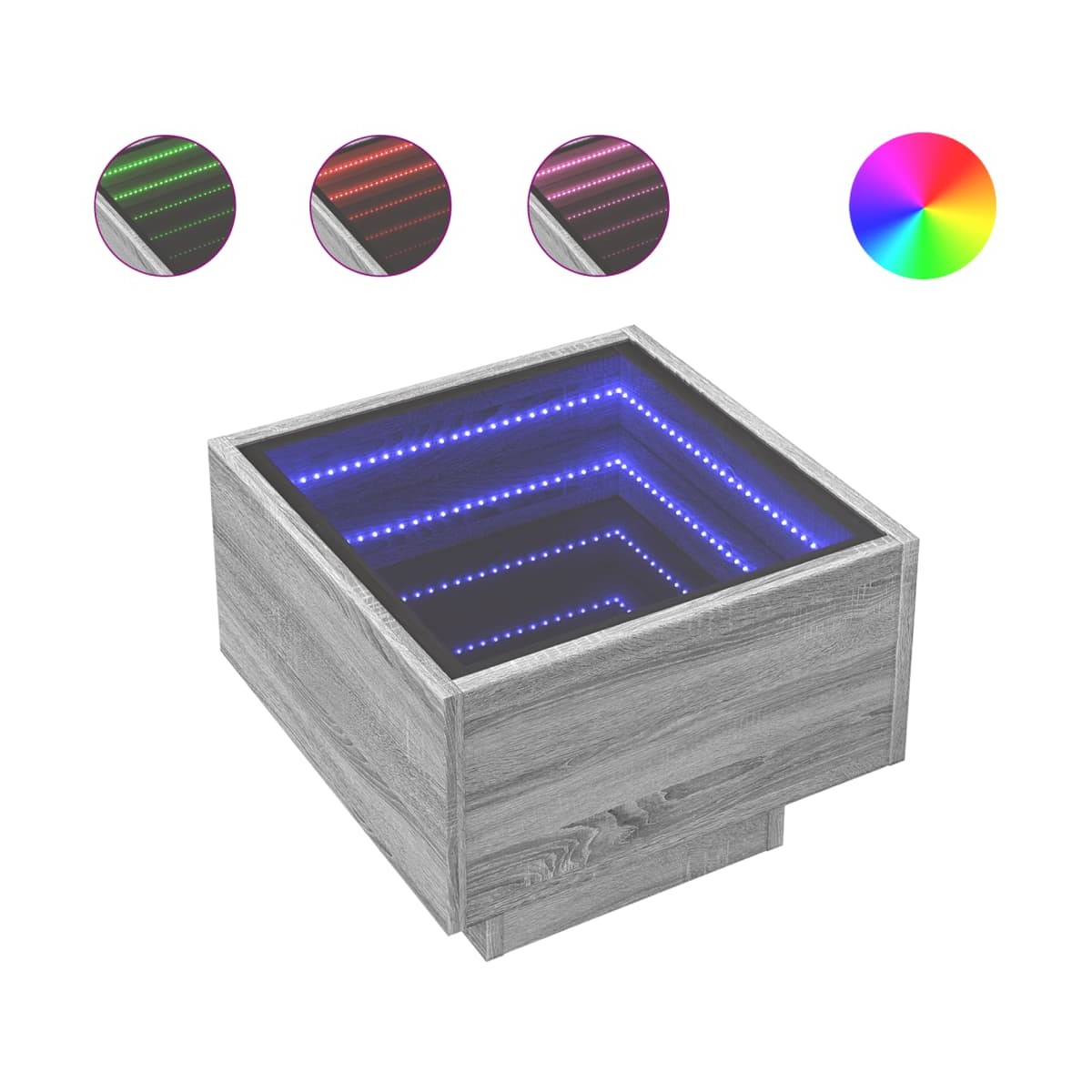 Esta mesita de noche con espejo LED infinito es un aporte atemporal para tu decoración de hogar. Material estable y duradero: La madera de ingeniería es un material duradero y estable con una superficie lisa que es resistente a la humedad, la deformación y la rotura, lo que la convierte en una opción fiable para una variedad de proyectos.Luces LED RGB para un ambiente agradable: Esta mesa cuenta con luces LED que se pueden ajustar fácilmente para crear un espectáculo de luces personalizado. Puedes personalizar los modos, los colores y el brillo para mejorar el ambiente de tu espacio de interior.Superficie estable y resistente: La resistente superficie de la mesa es ideal para dejar objetos decorativos o cualquier otra cosa que necesites al alcance de la mano. Información útil: El producto tiene un conector USB que necesita una fuente de alimentación USB certificada de 5 V (no incluida).