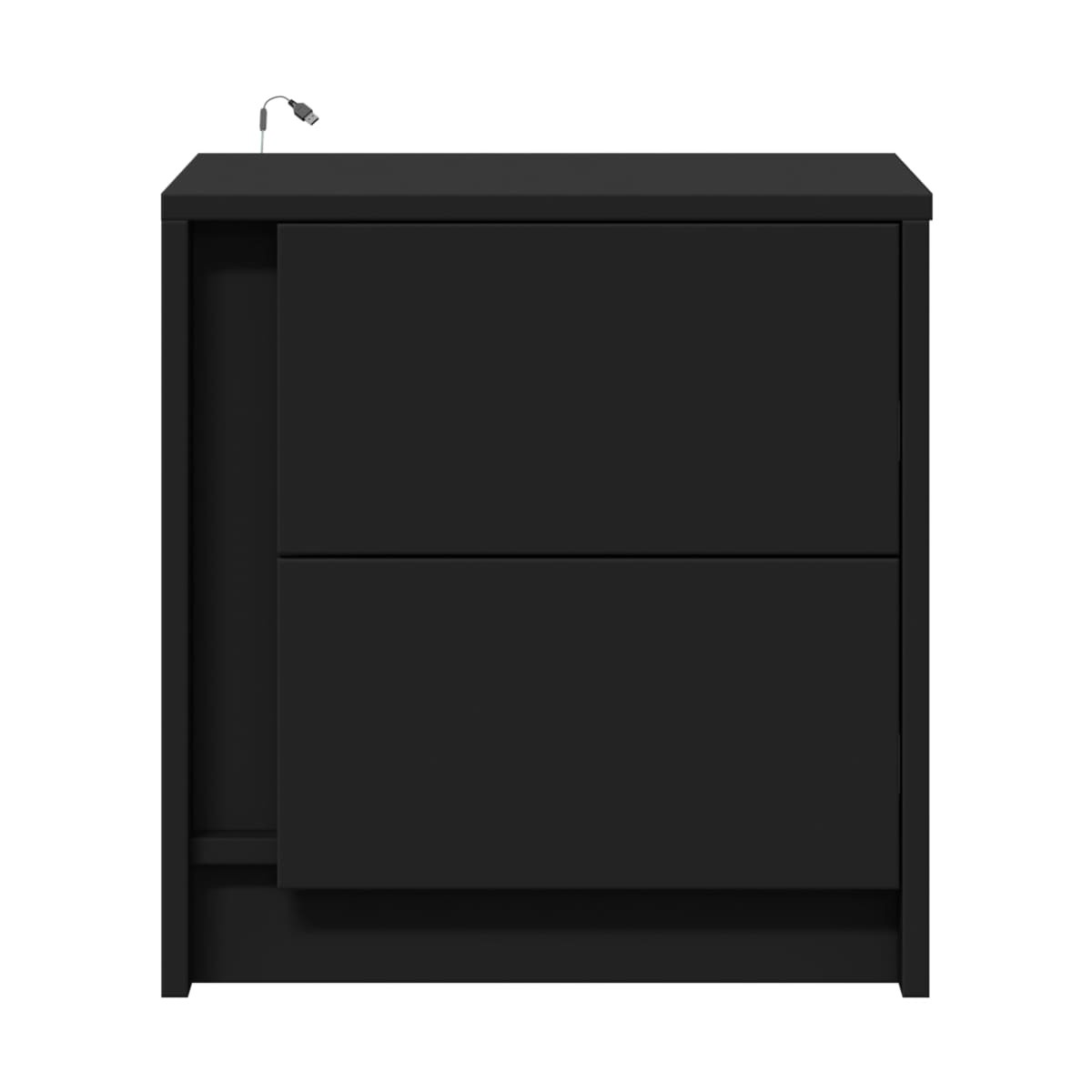 Con un diseño elegante, estas mesitas de noche encajan fácilmente en tu dormitorio o sala de estar y agregan un encanto atemporal a tu decoración. Material duradero:La madera de ingeniería tiene una calidad excepcional, con una superficie lisa y también con fuerza, estabilidad y resistencia a la humedad.Amplio espacio de almacenamiento: La mesita de noche con cajón ofrece un amplio espacio de almacenamiento para mantener tus diversos artículos de uso diario bien organizados y al alcance.Luces LED RGB para un ambiente agradable: Esta mesa auxiliar cuenta con luces LED que se pueden ajustar fácilmente para crear un espectáculo de luces personalizado. Puedes personalizar los modos, los colores y el brillo para mejorar el ambiente de tu hogar.Fácil de mantener: Gracias a su superficie lisa, el armario auxiliar es fácil de limpiar con un paño húmedo y requiere menos mantenimiento. Información útil:El producto tiene un conector USB que necesita una fuente de alimentación USB certificada de 5 V (no incluida).